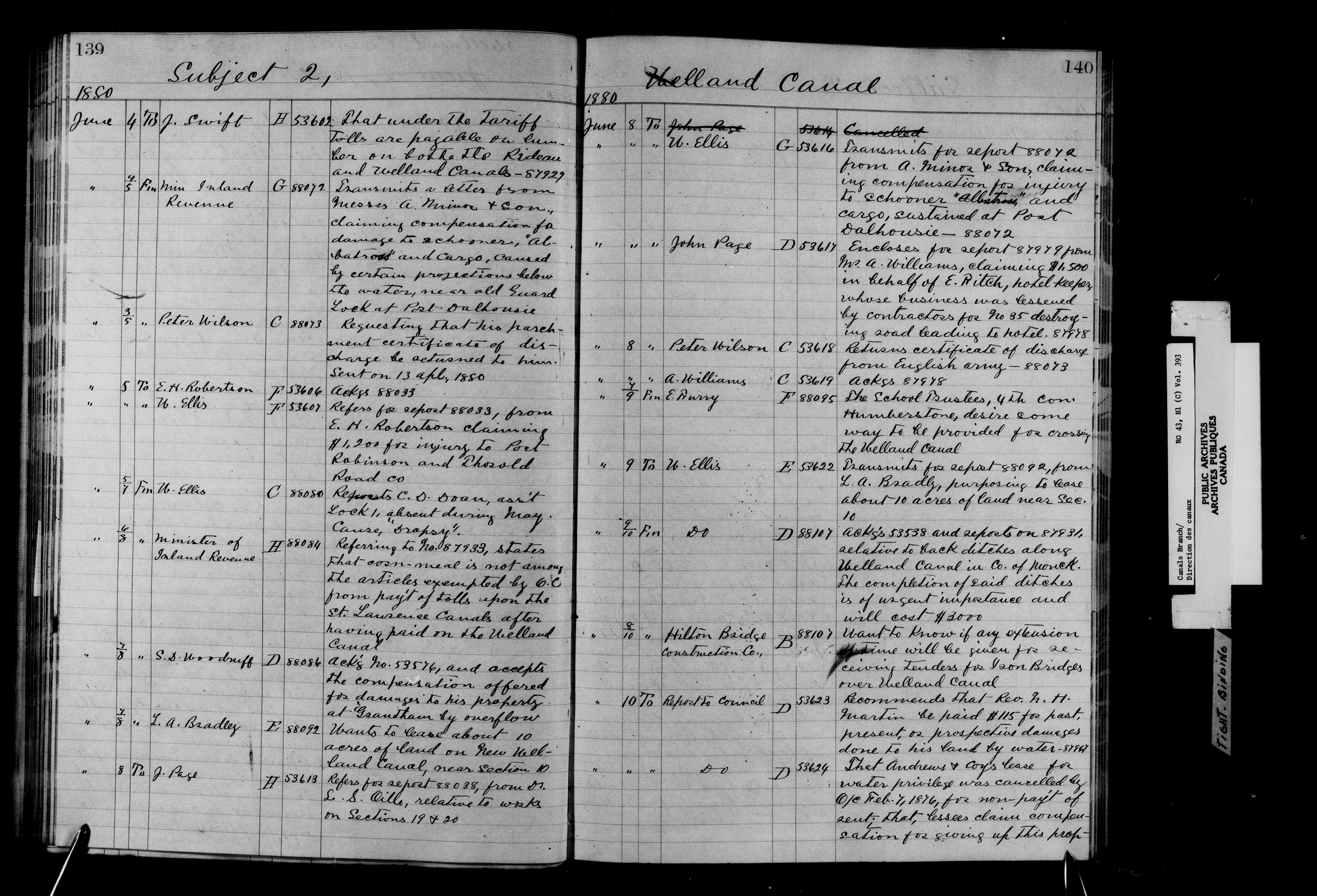 Department of Railways and Canals, Canal Branch : correspondence, registers and indexes, 1838-1936 : C-11696