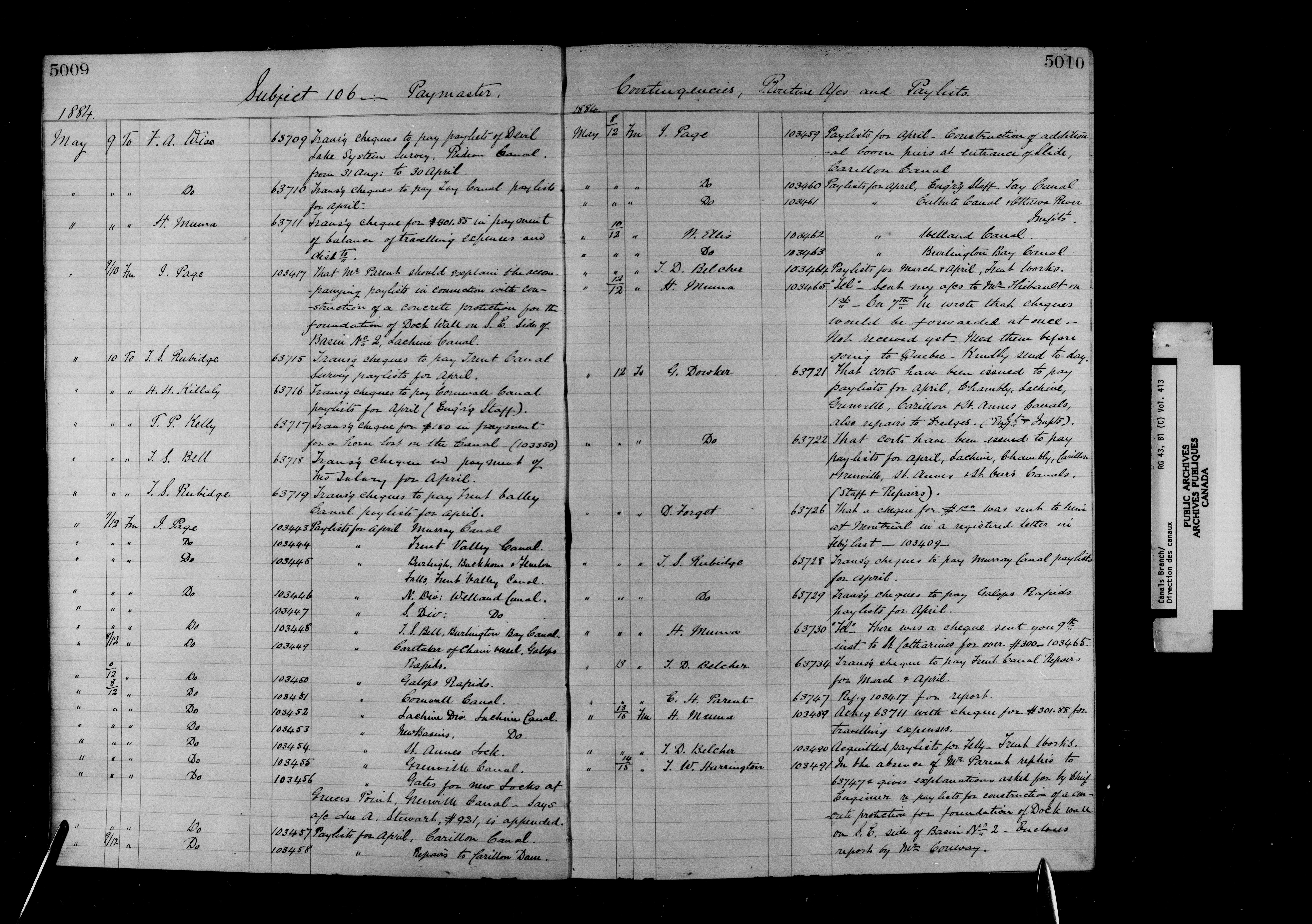 Department of Railways and Canals, Canal Branch : correspondence, registers and indexes, 1838-1936 : C-11699