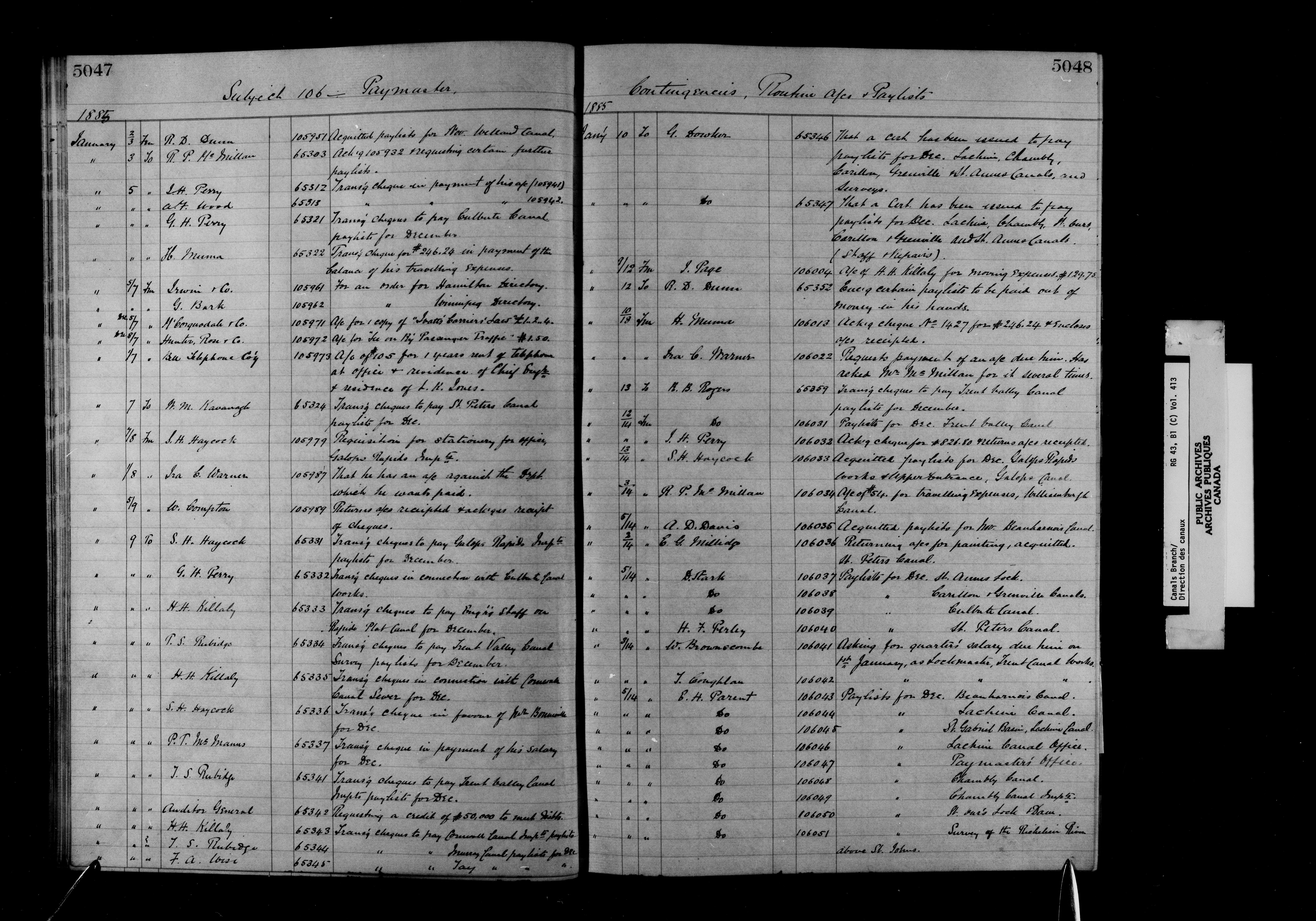 Department of Railways and Canals, Canal Branch : correspondence, registers and indexes, 1838-1936 : C-11699