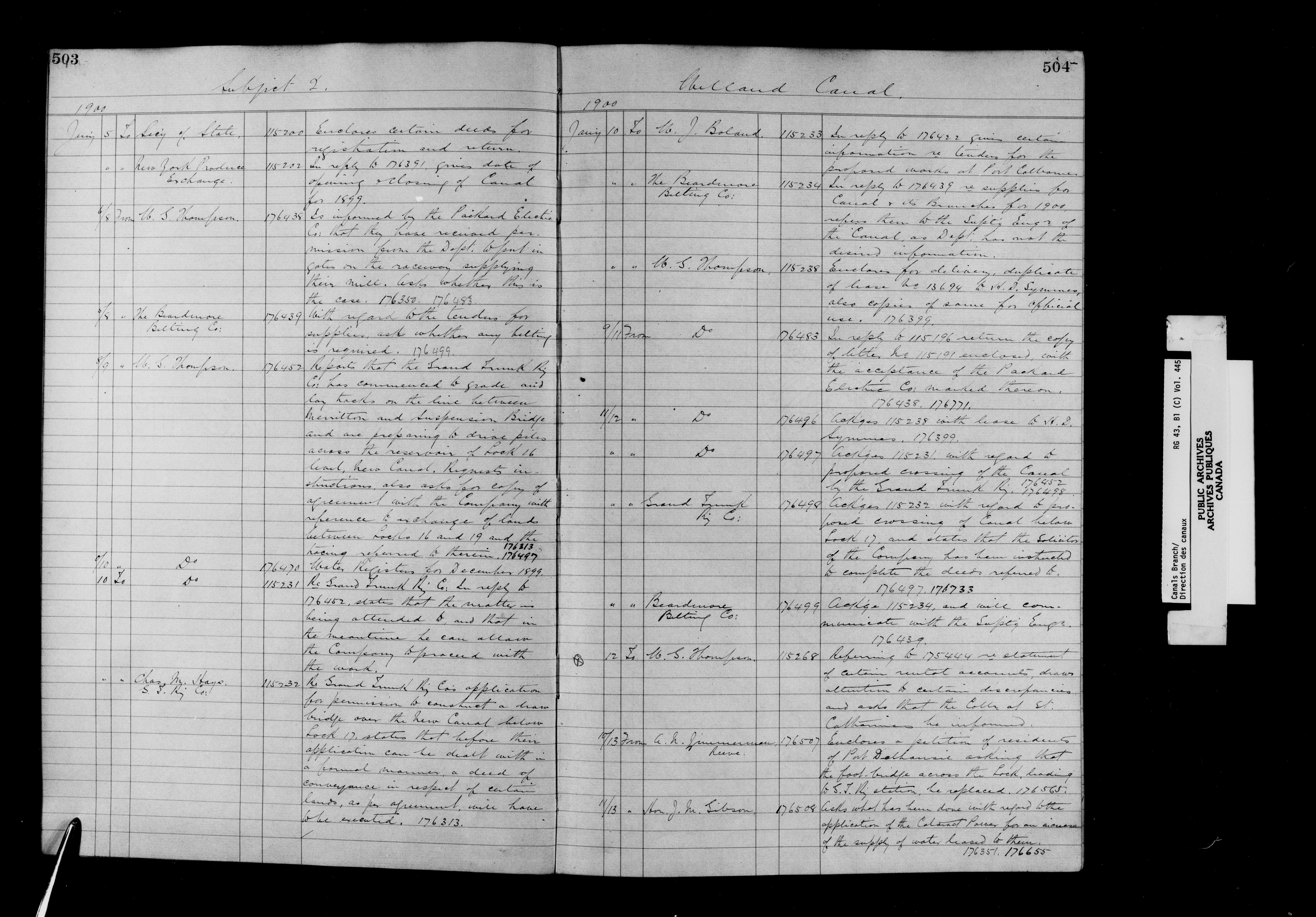 Department of Railways and Canals, Canal Branch : correspondence, registers and indexes, 1838-1936 : C-11704