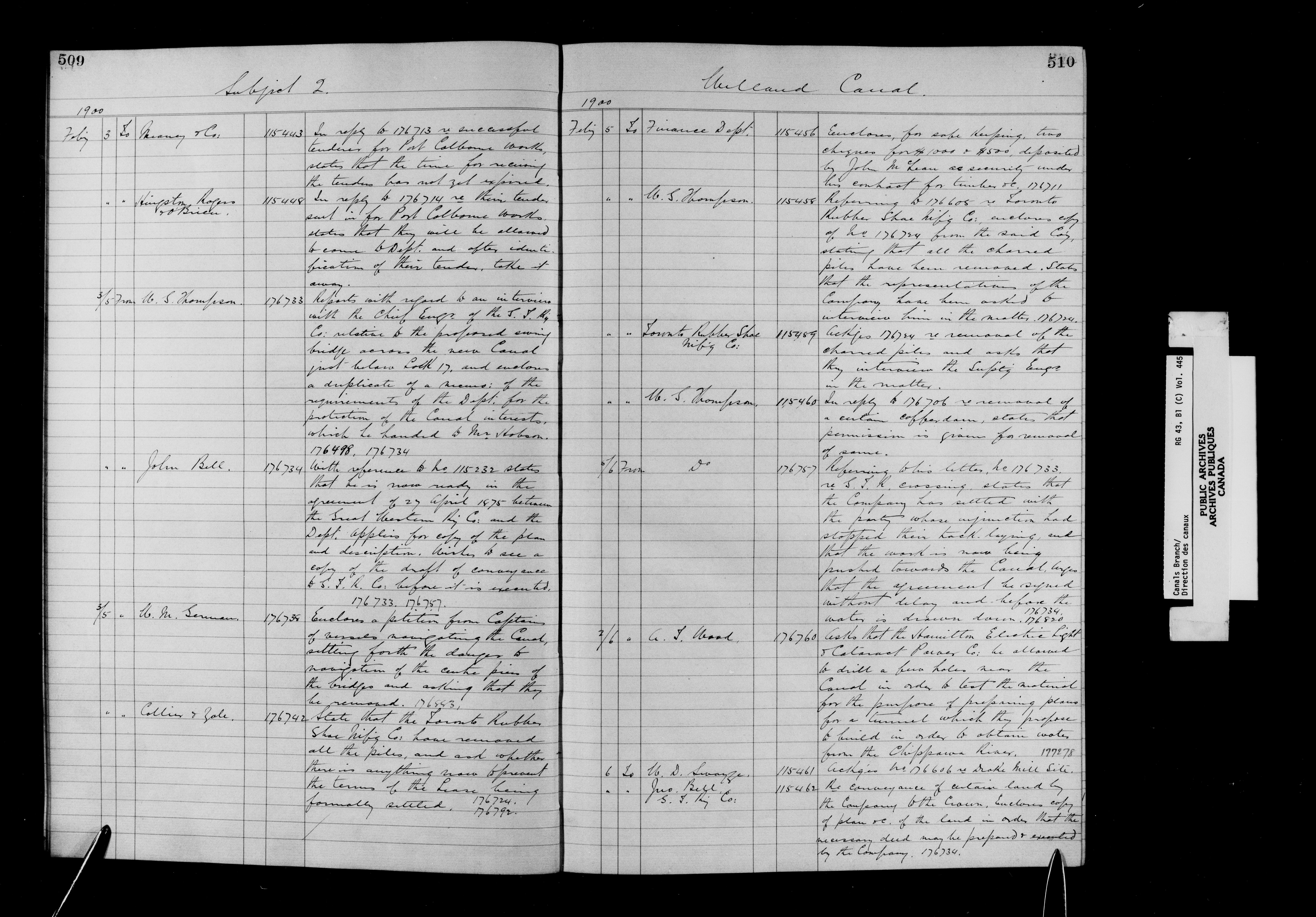 Department of Railways and Canals, Canal Branch : correspondence, registers and indexes, 1838-1936 : C-11704
