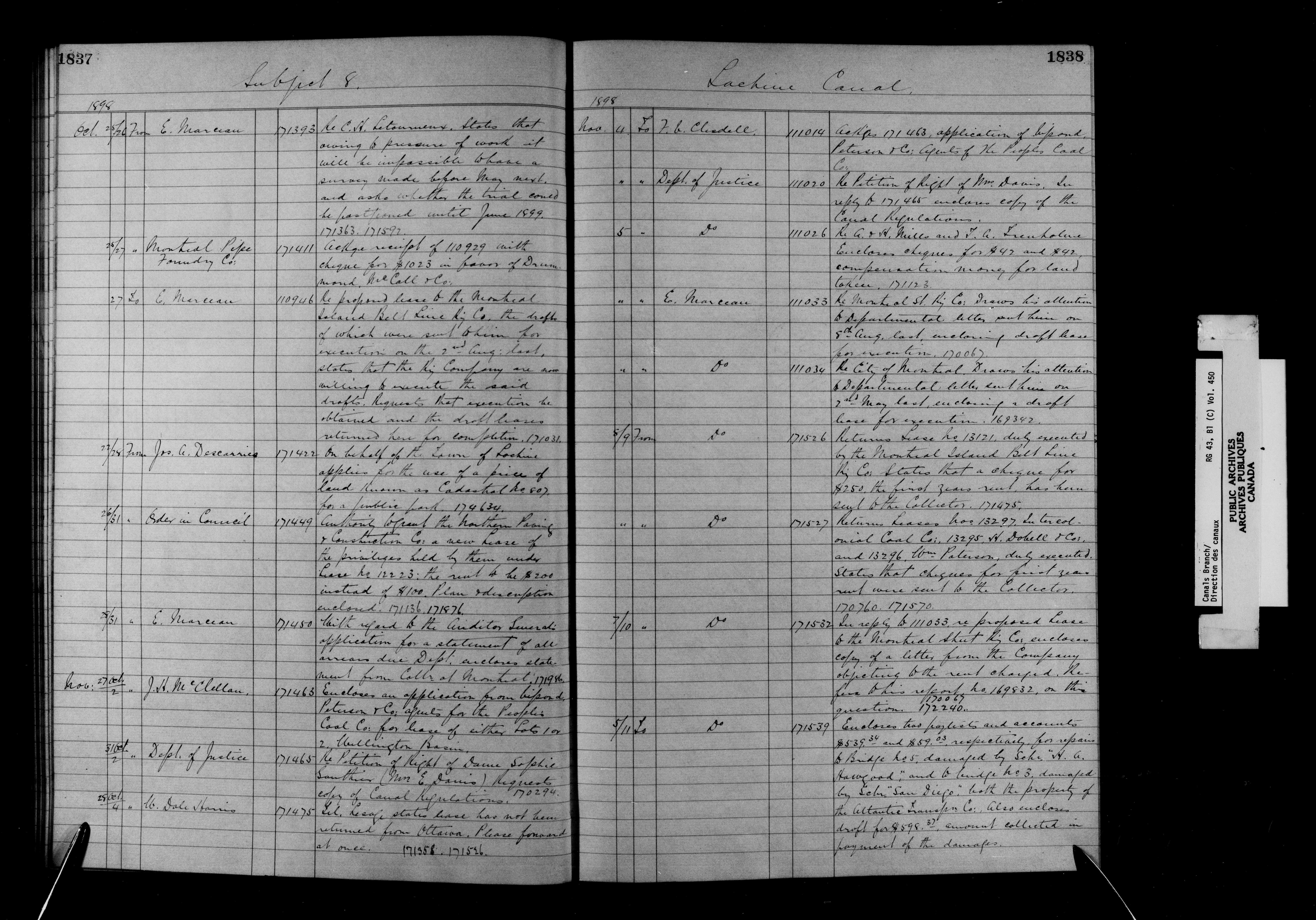 Department of Railways and Canals, Canal Branch : correspondence, registers and indexes, 1838-1936 : C-11705