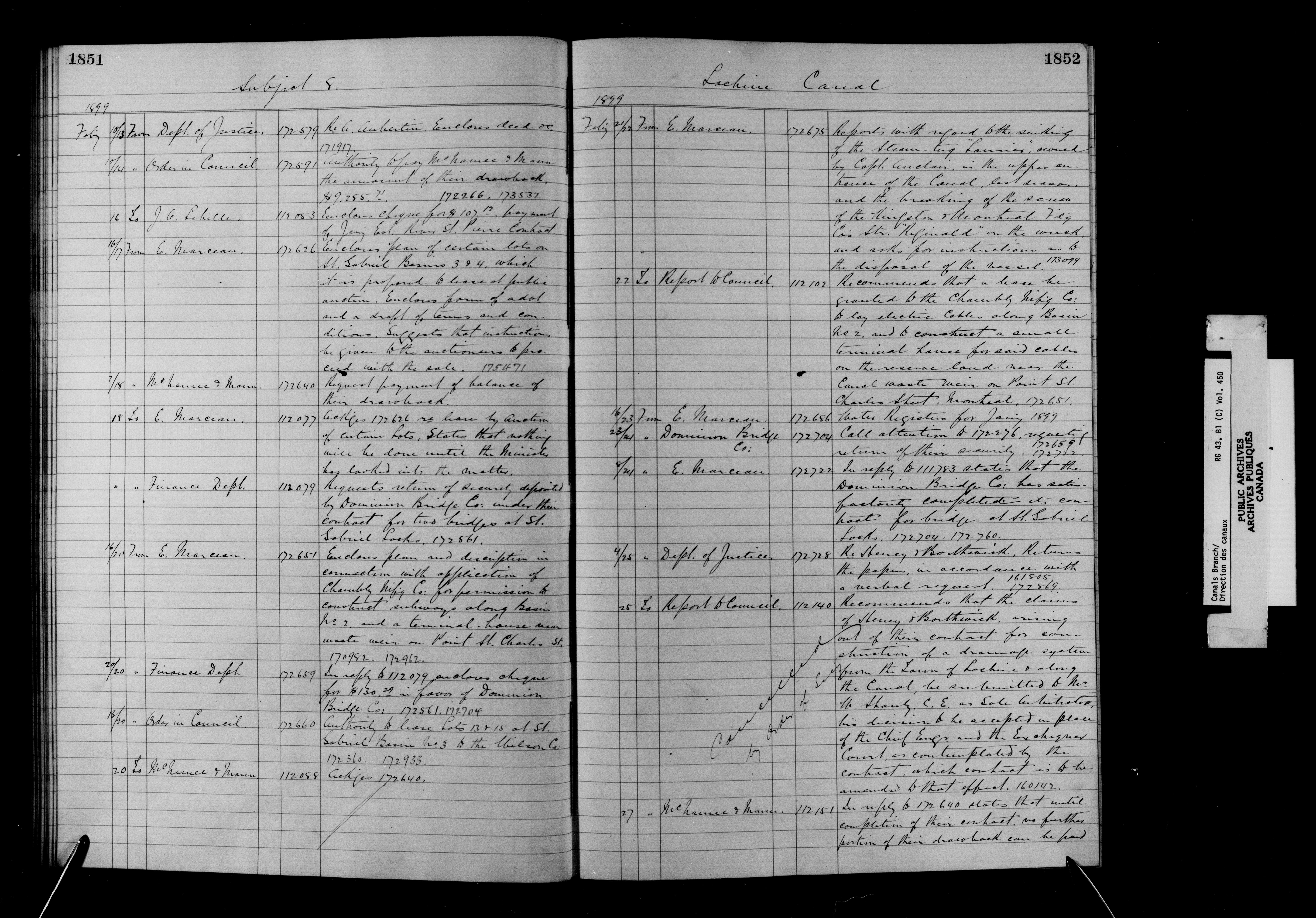 Department of Railways and Canals, Canal Branch : correspondence, registers and indexes, 1838-1936 : C-11705