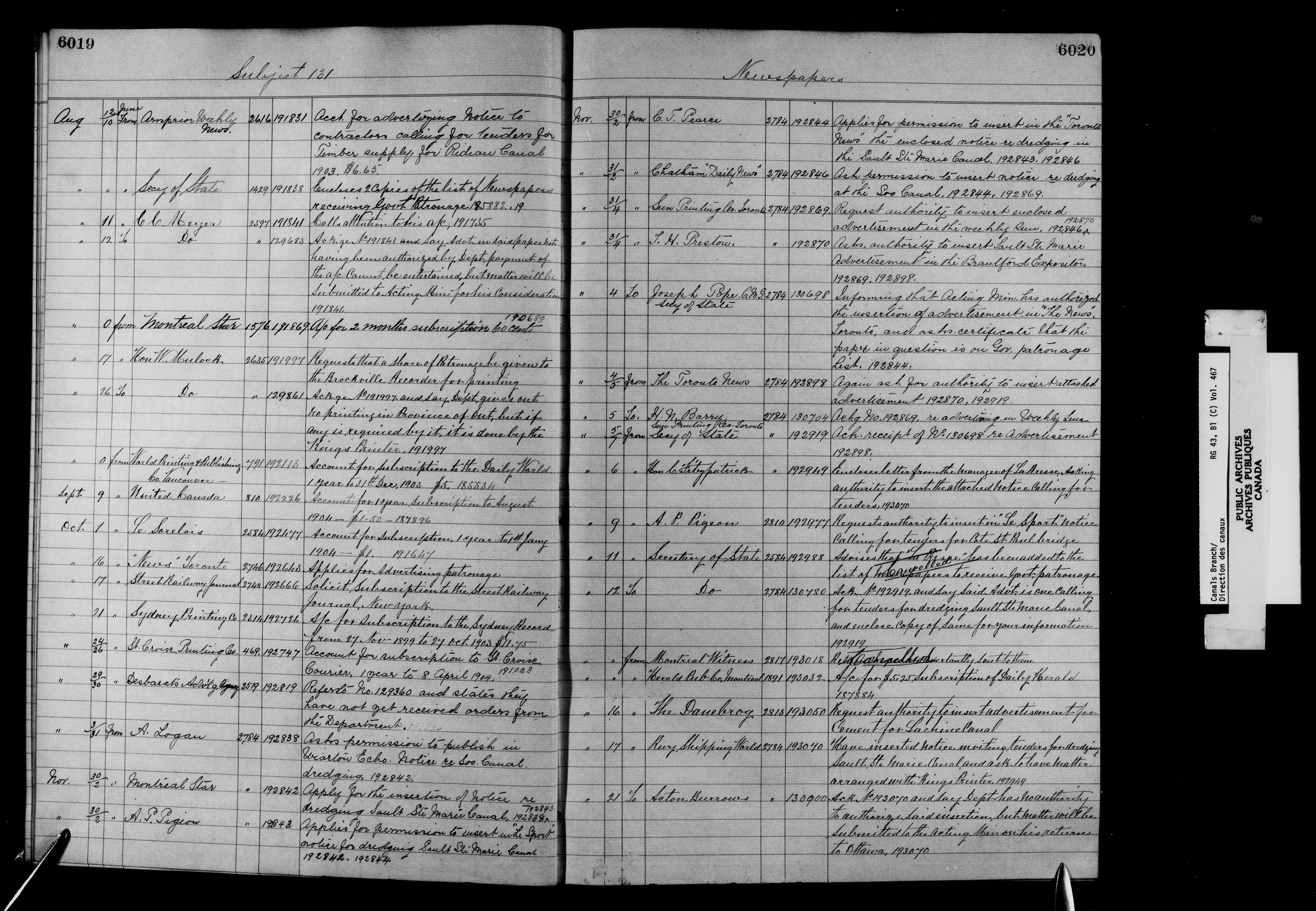 Department of Railways and Canals, Canal Branch : correspondence, registers and indexes, 1838-1936 : C-11707