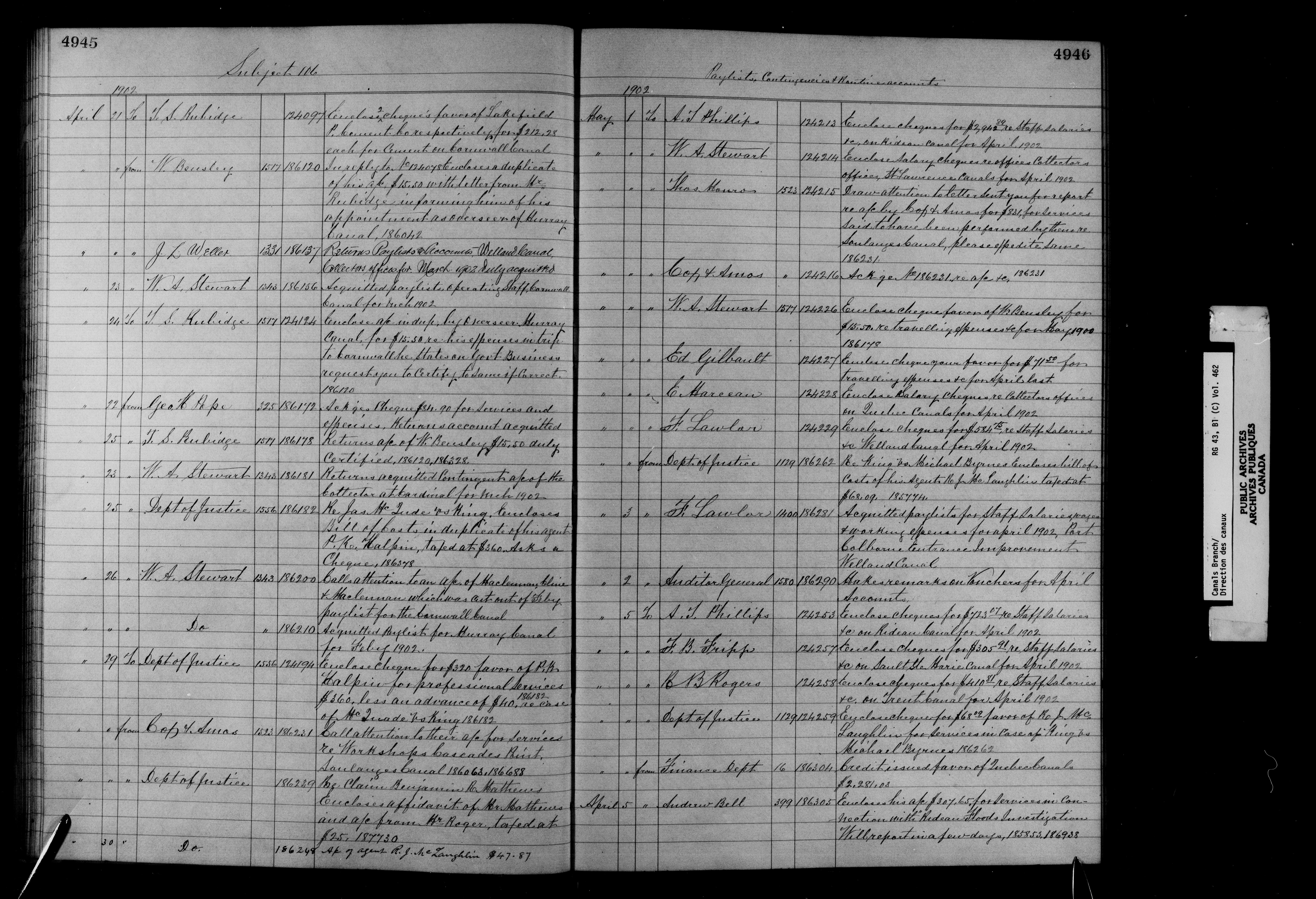 Department of Railways and Canals, Canal Branch : correspondence, registers and indexes, 1838-1936 : C-11707