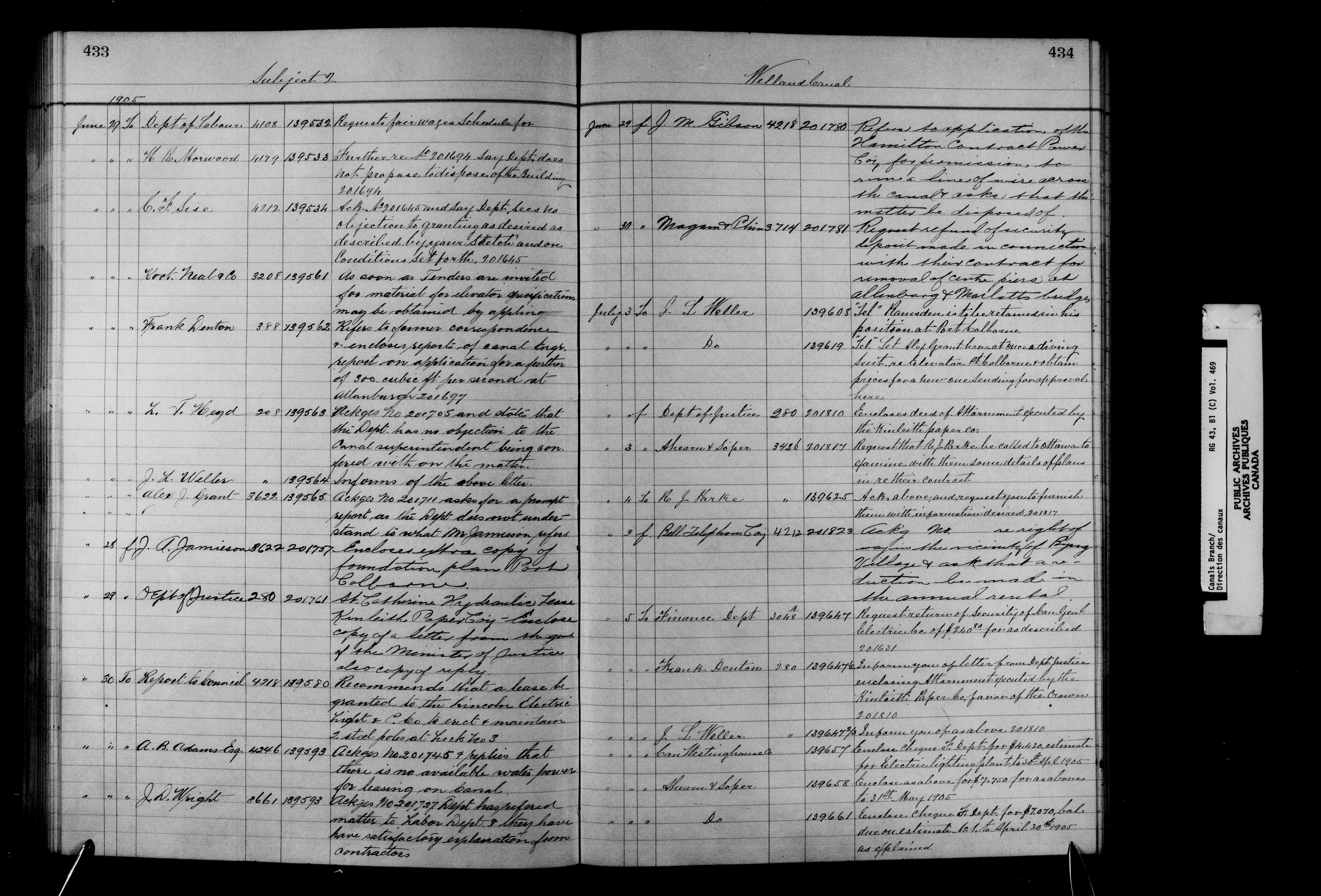 Department of Railways and Canals, Canal Branch : correspondence, registers and indexes, 1838-1936 : C-11708