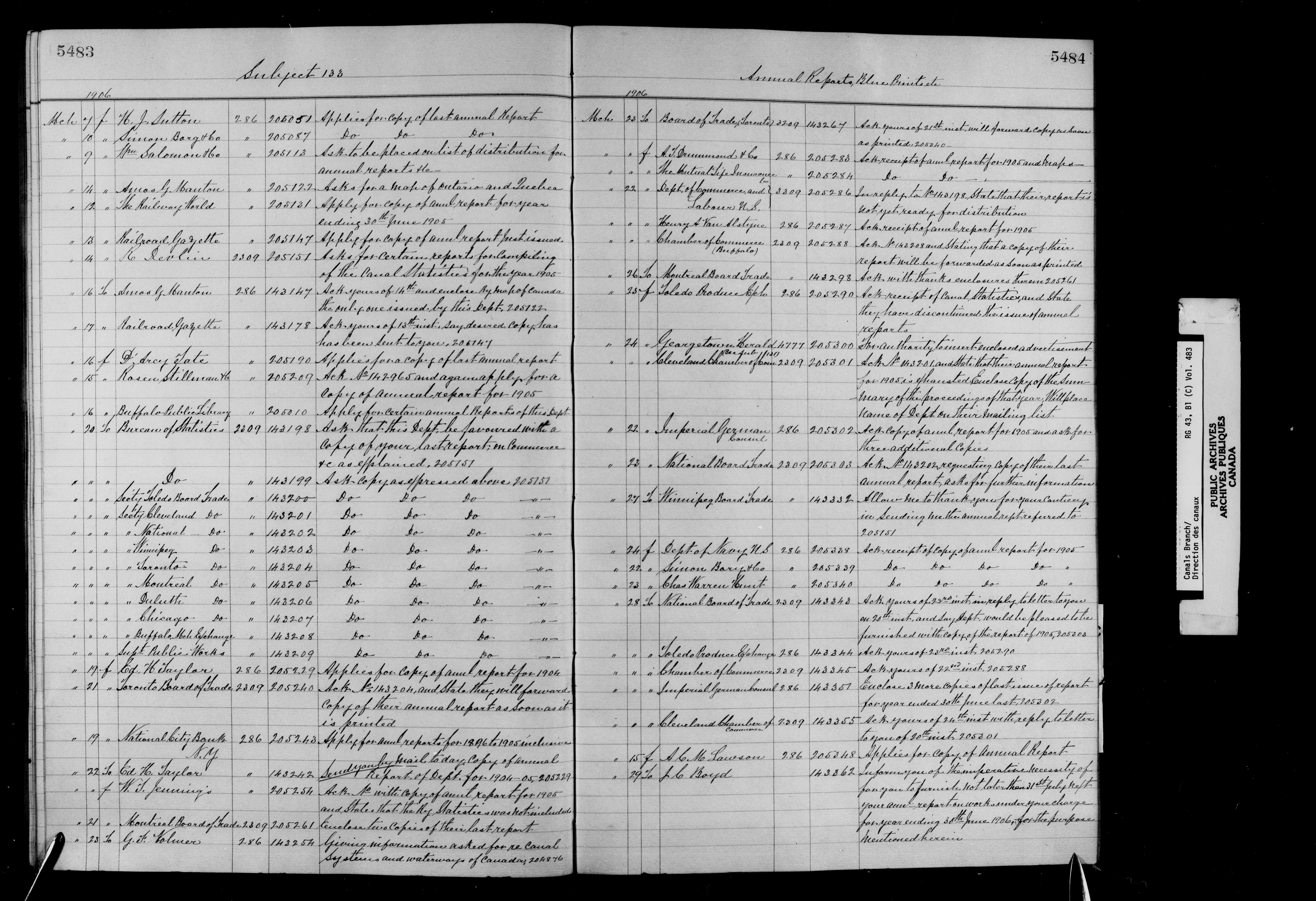 Department of Railways and Canals, Canal Branch : correspondence, registers and indexes, 1838-1936 : C-11709