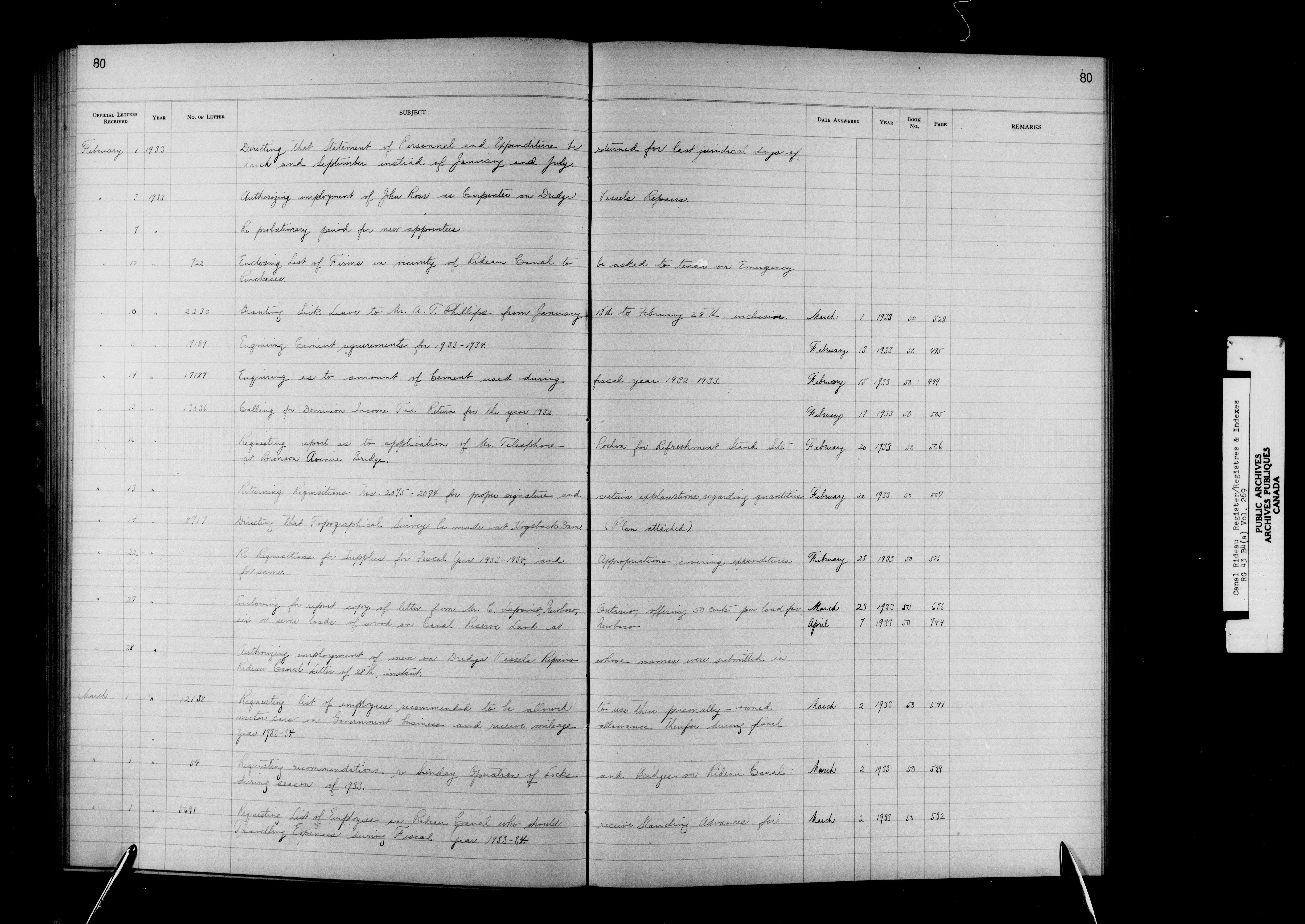 Department of Railways and Canals, Canal Branch : correspondence, registers and indexes, 1838-1936 - 11711