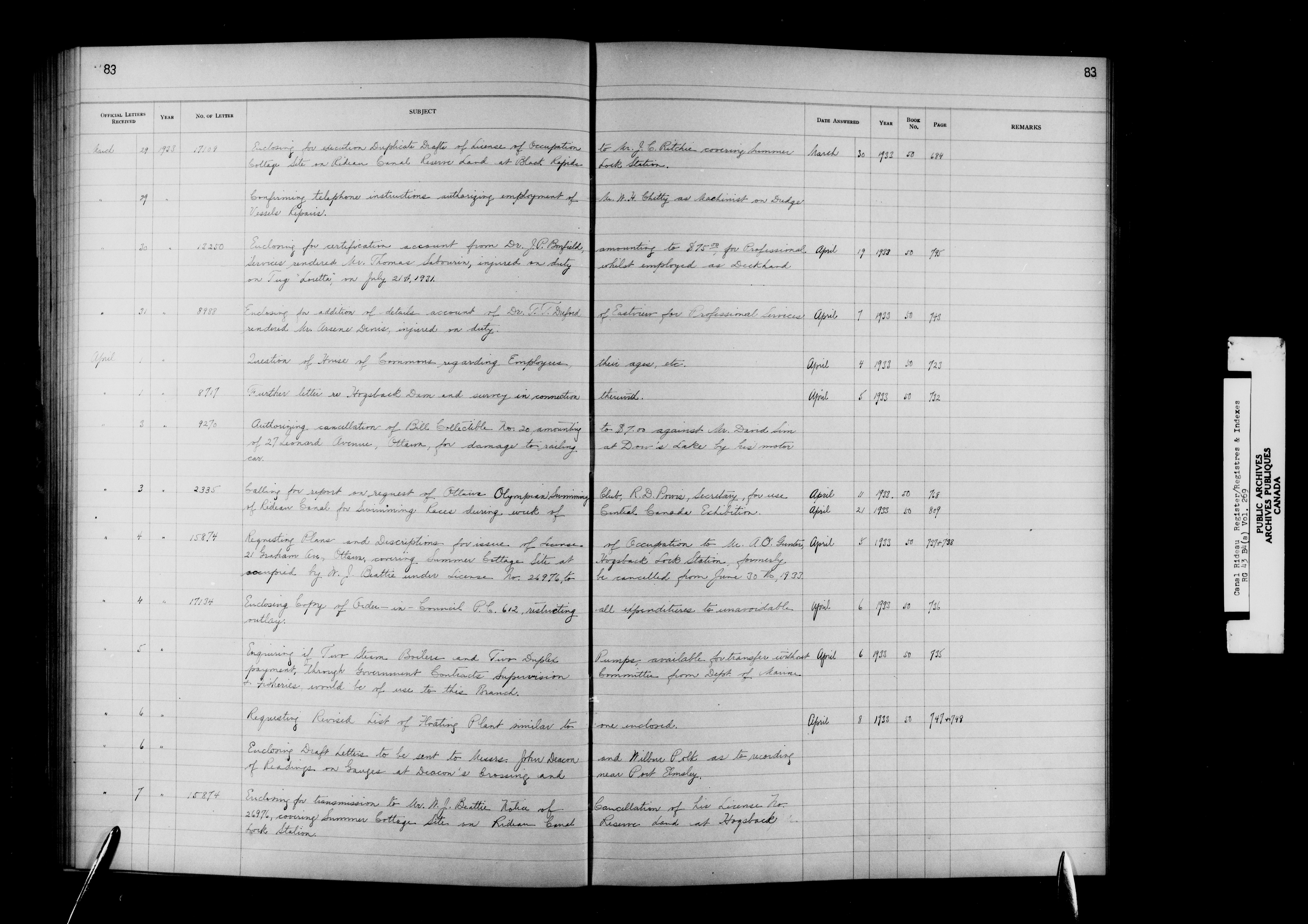Department of Railways and Canals, Canal Branch : correspondence, registers and indexes, 1838-1936 - 11711
