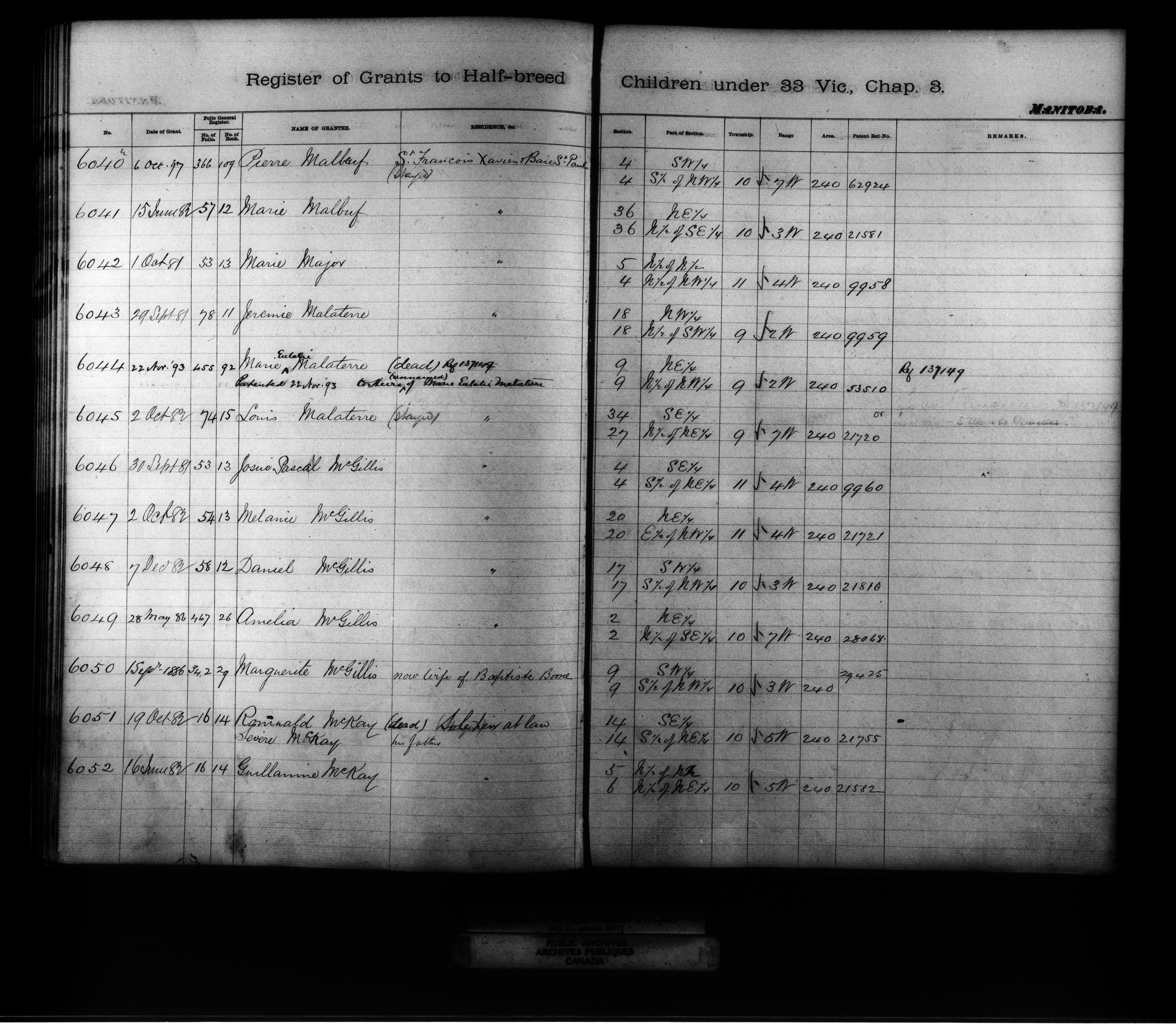 Department of the Interior : Registers and indexes relating to Métis and Original White Settlers land records, 1877-1927 - 11872