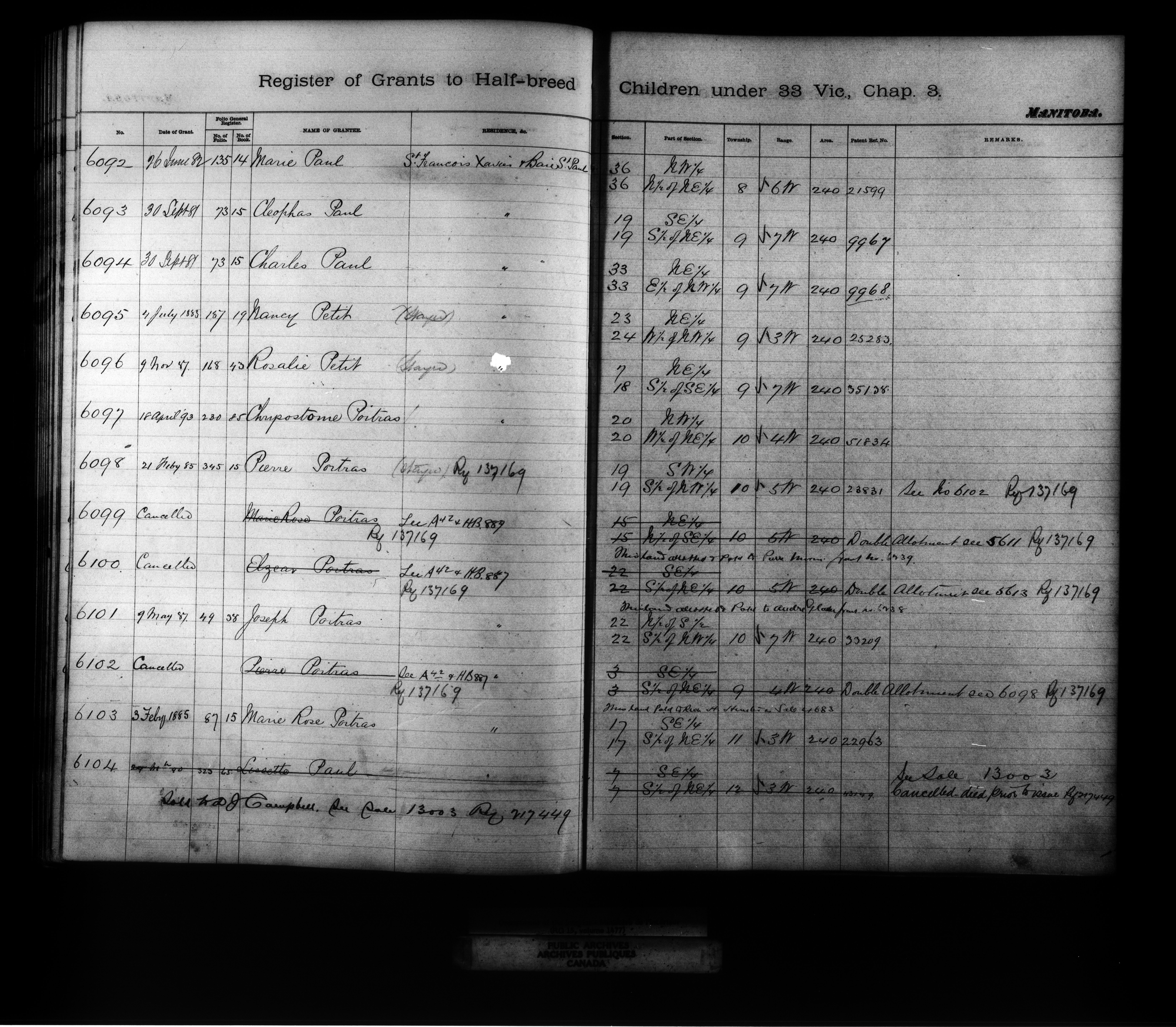 Department of the Interior : Registers and indexes relating to Métis and Original White Settlers land records, 1877-1927 - 11872