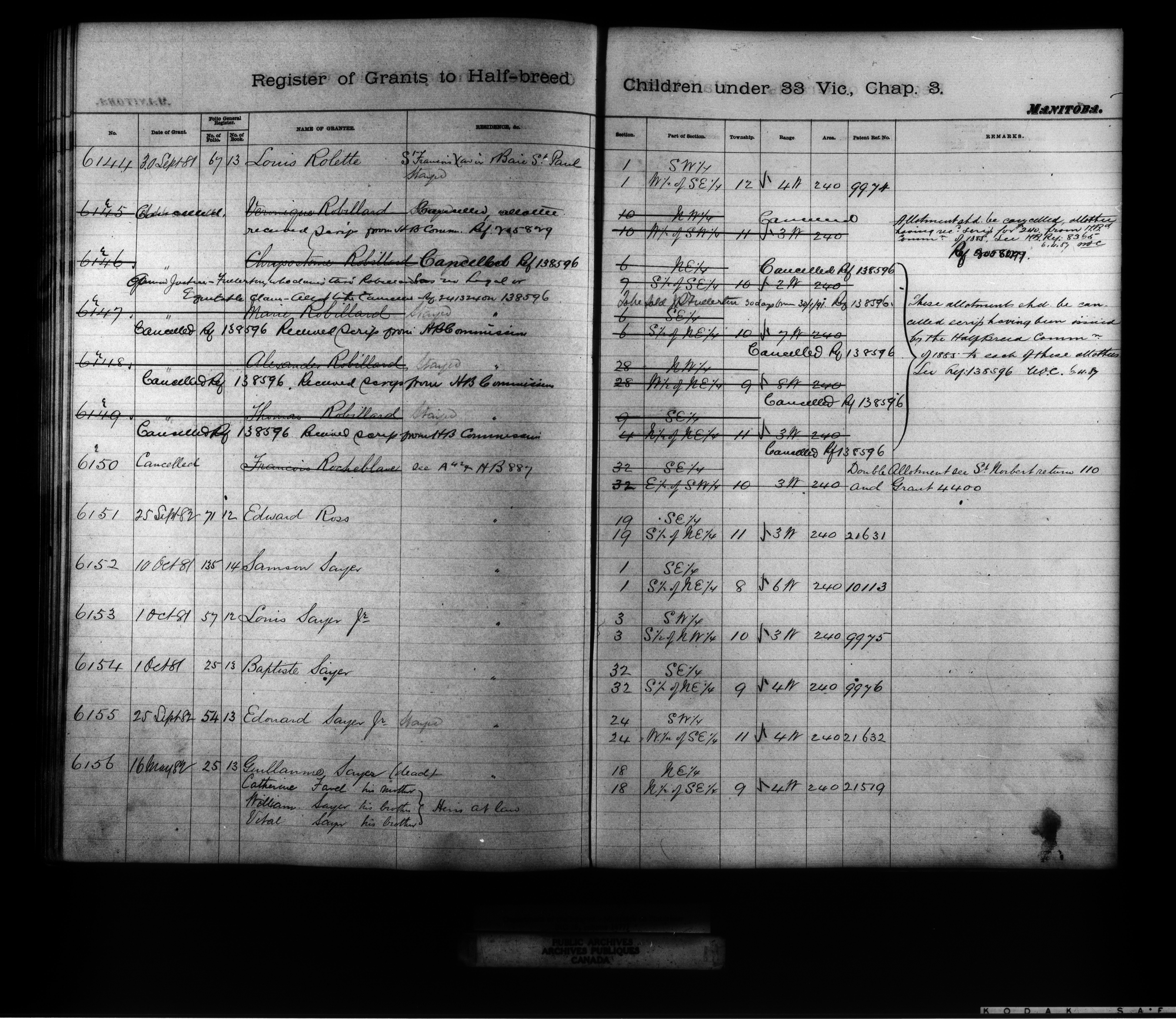 Department of the Interior : Registers and indexes relating to Métis and Original White Settlers land records, 1877-1927 - 11872