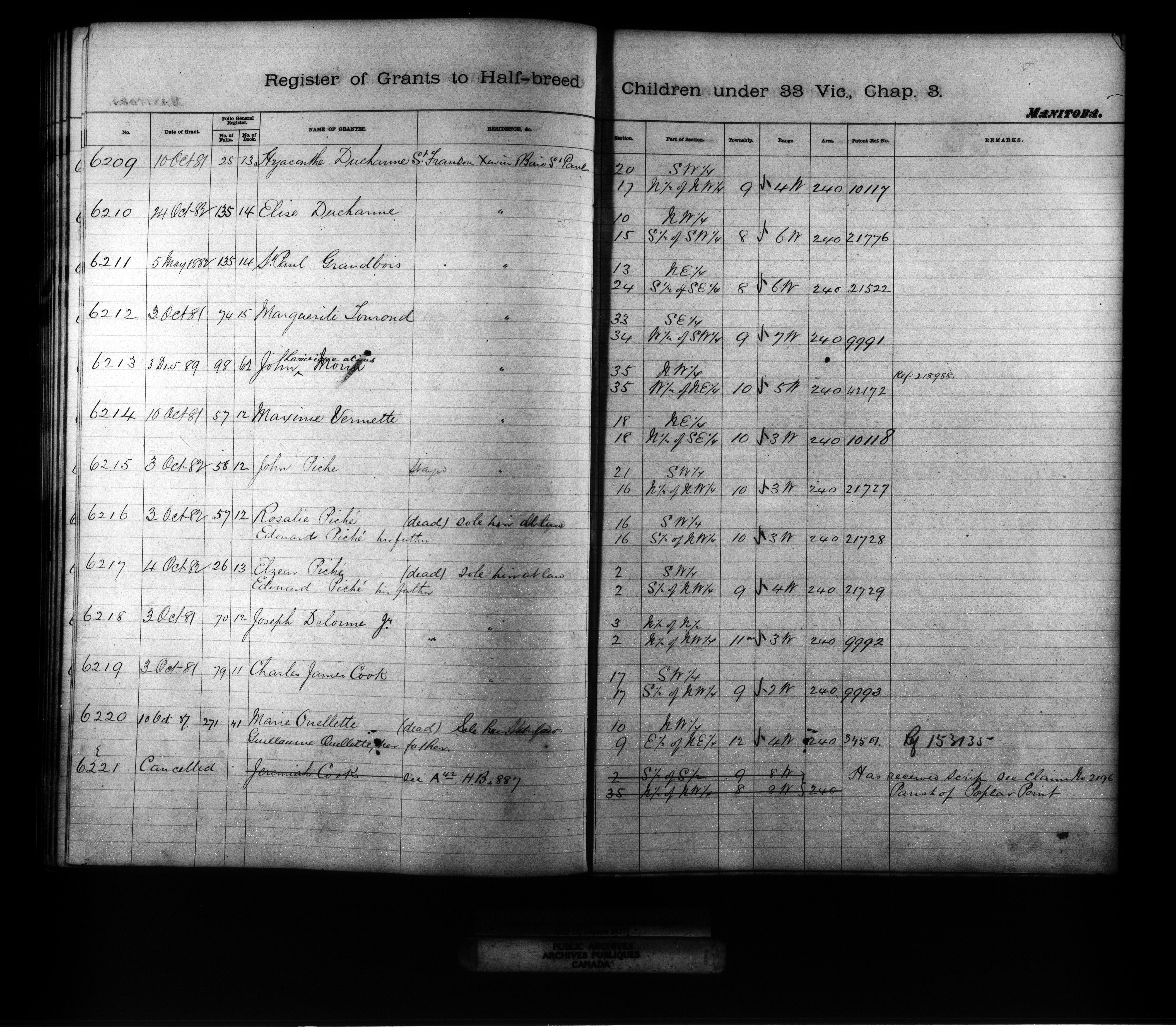 Department of the Interior : Registers and indexes relating to Métis and Original White Settlers land records, 1877-1927 - 11872