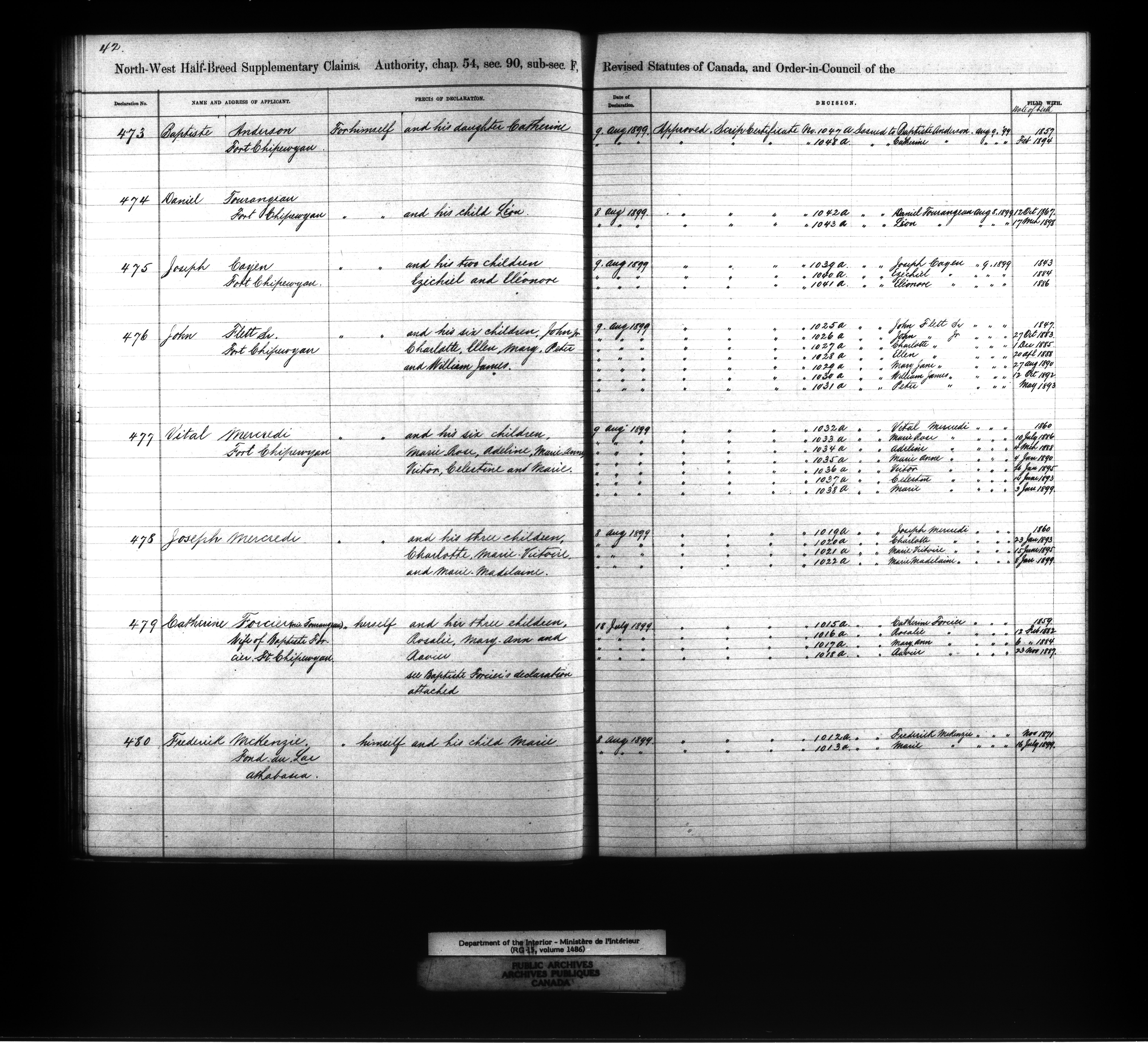 Department of the Interior : Registers and indexes relating to Métis and Original White Settlers land records, 1877-1927 - 11874