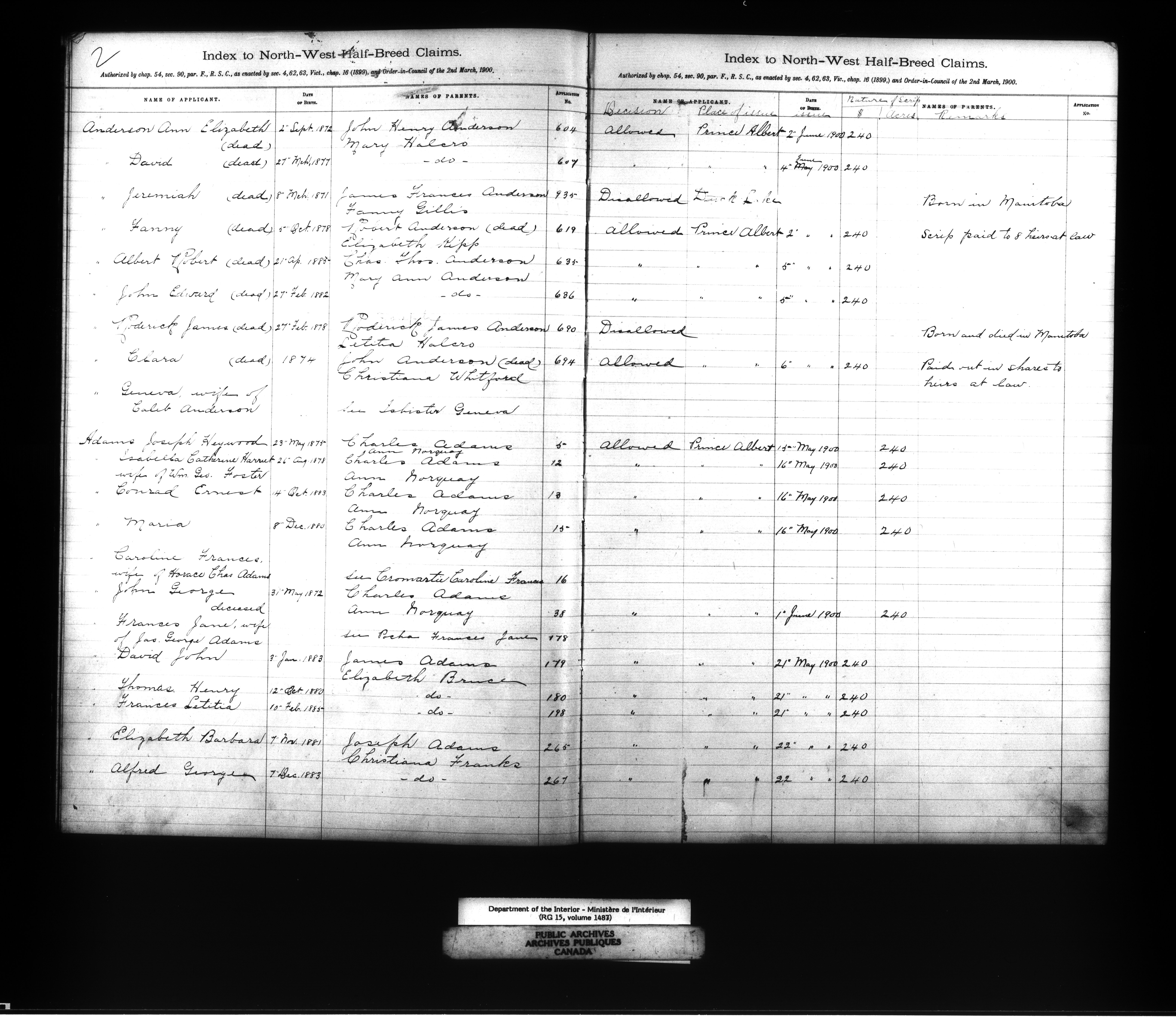 Department of the Interior : Registers and indexes relating to Métis and Original White Settlers land records, 1877-1927 - 11874
