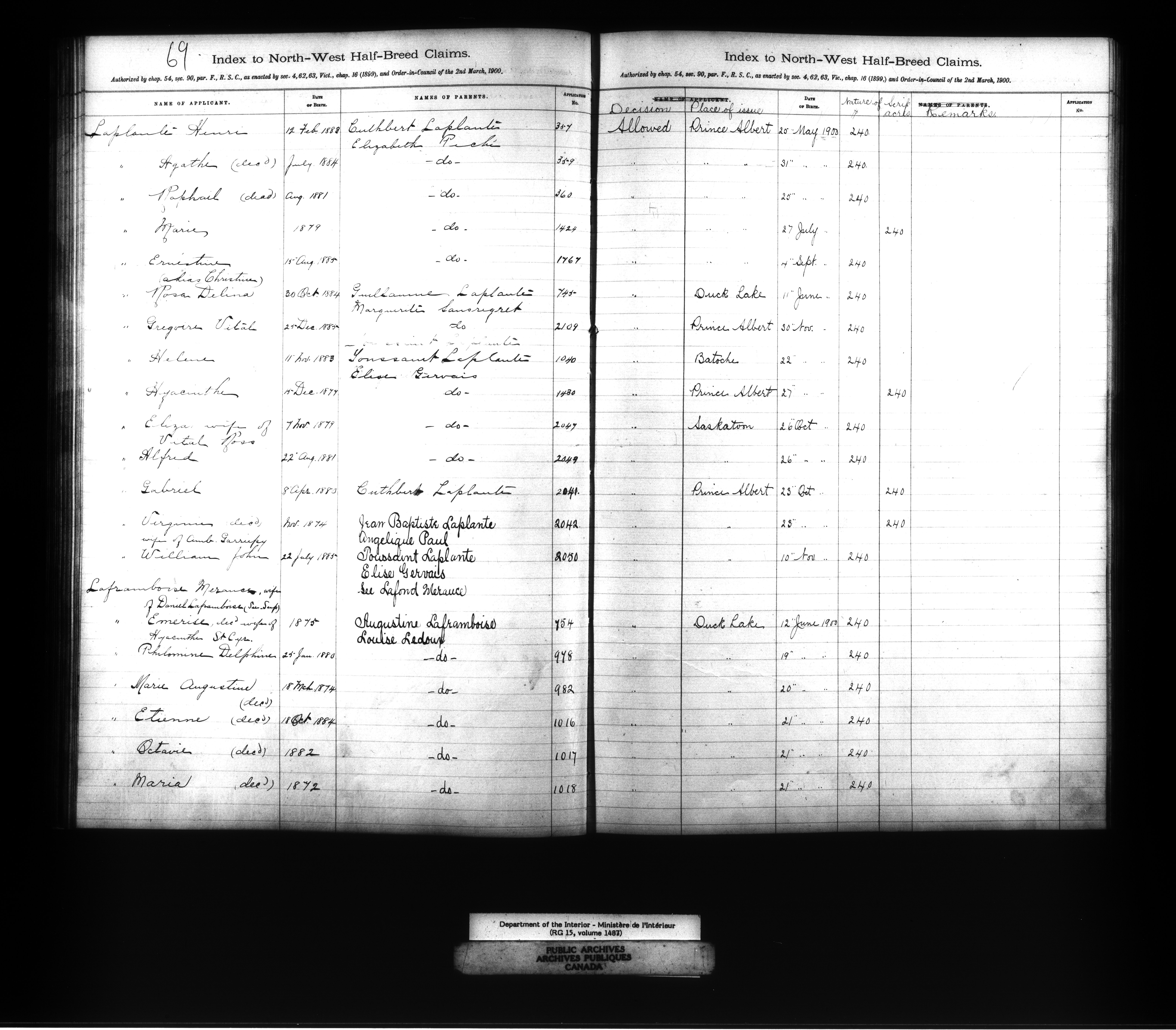 Department of the Interior : Registers and indexes relating to Métis and Original White Settlers land records, 1877-1927 - 11874