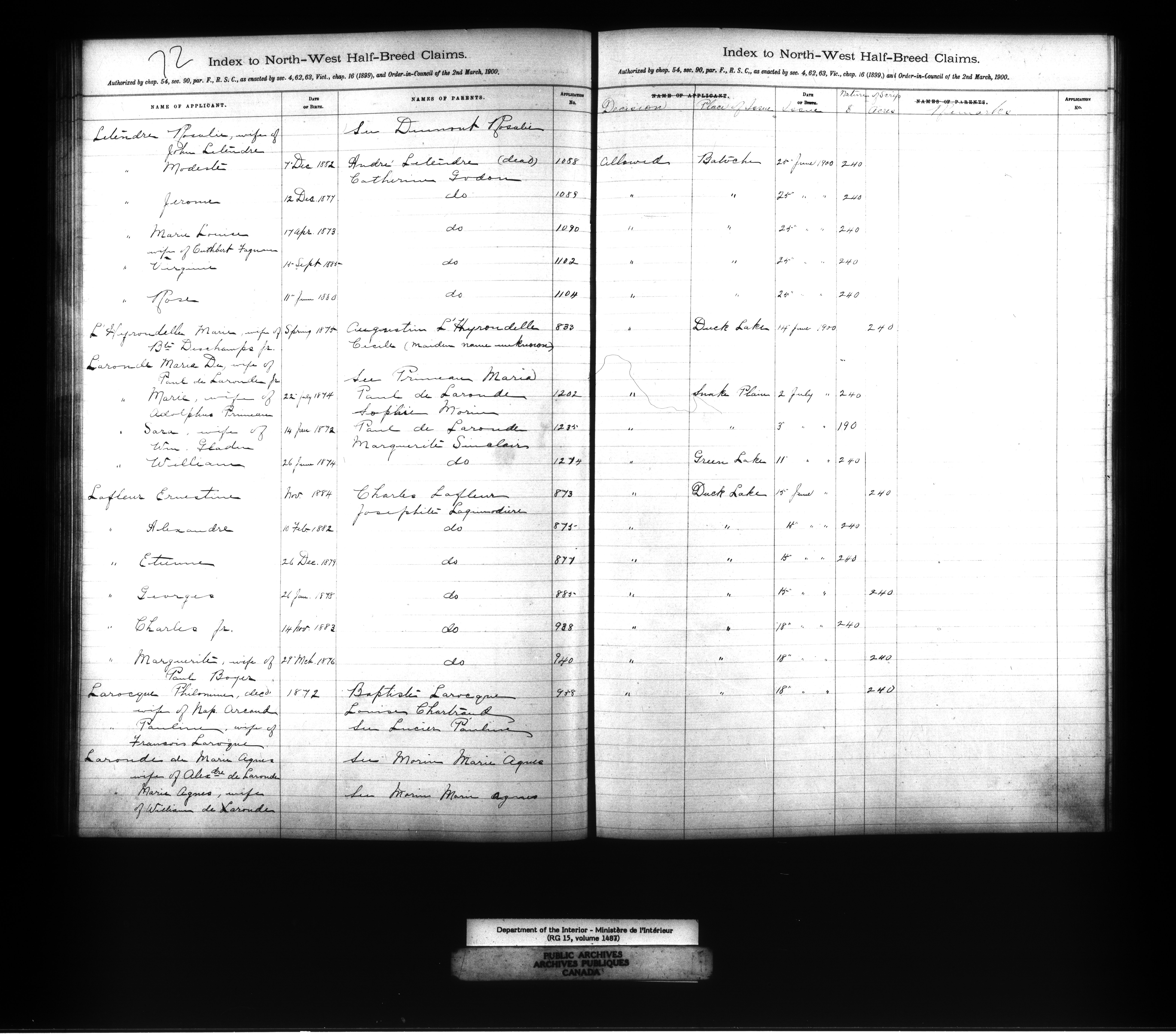 Department of the Interior : Registers and indexes relating to Métis and Original White Settlers land records, 1877-1927 - 11874