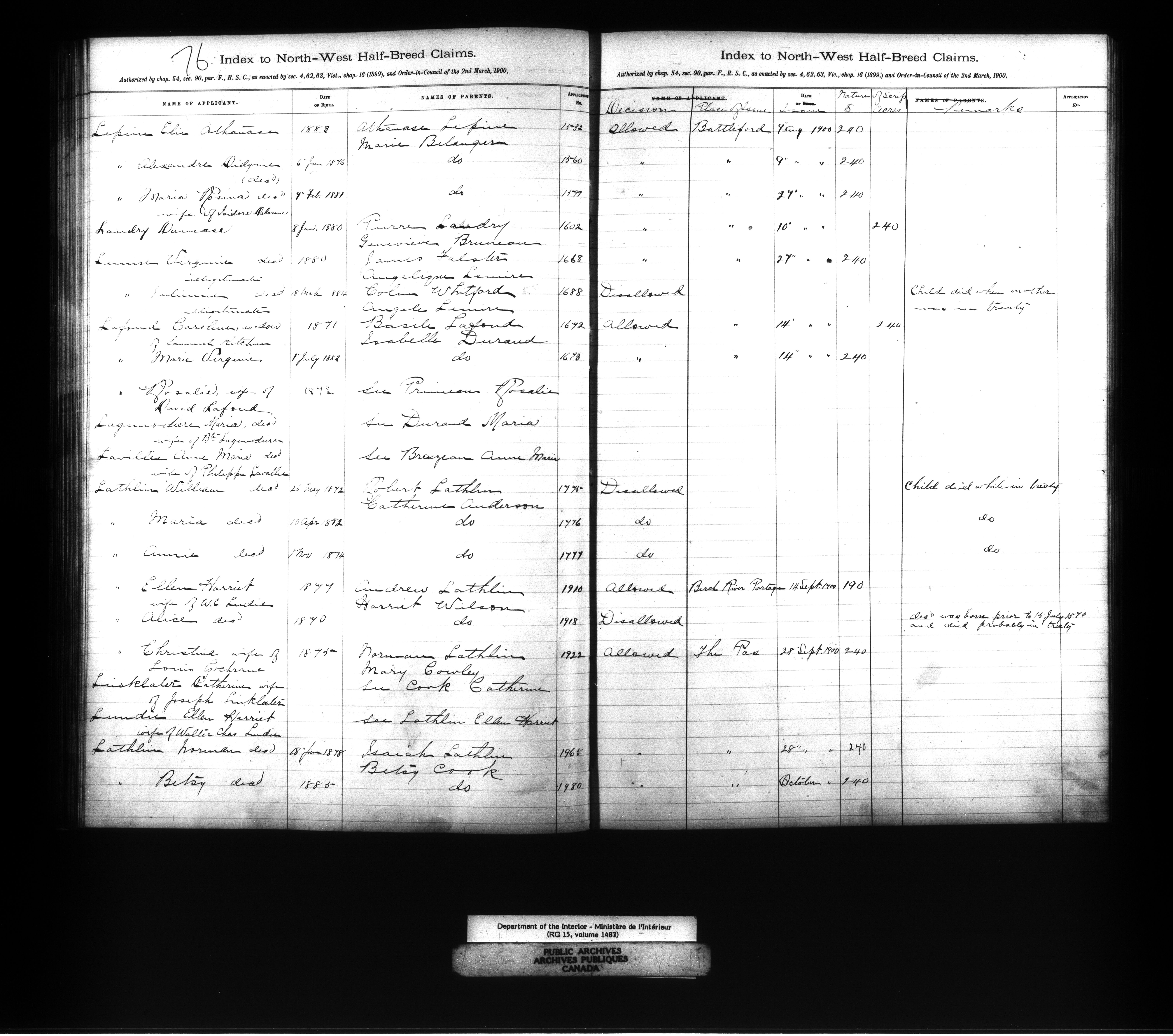 Department of the Interior : Registers and indexes relating to Métis and Original White Settlers land records, 1877-1927 - 11874
