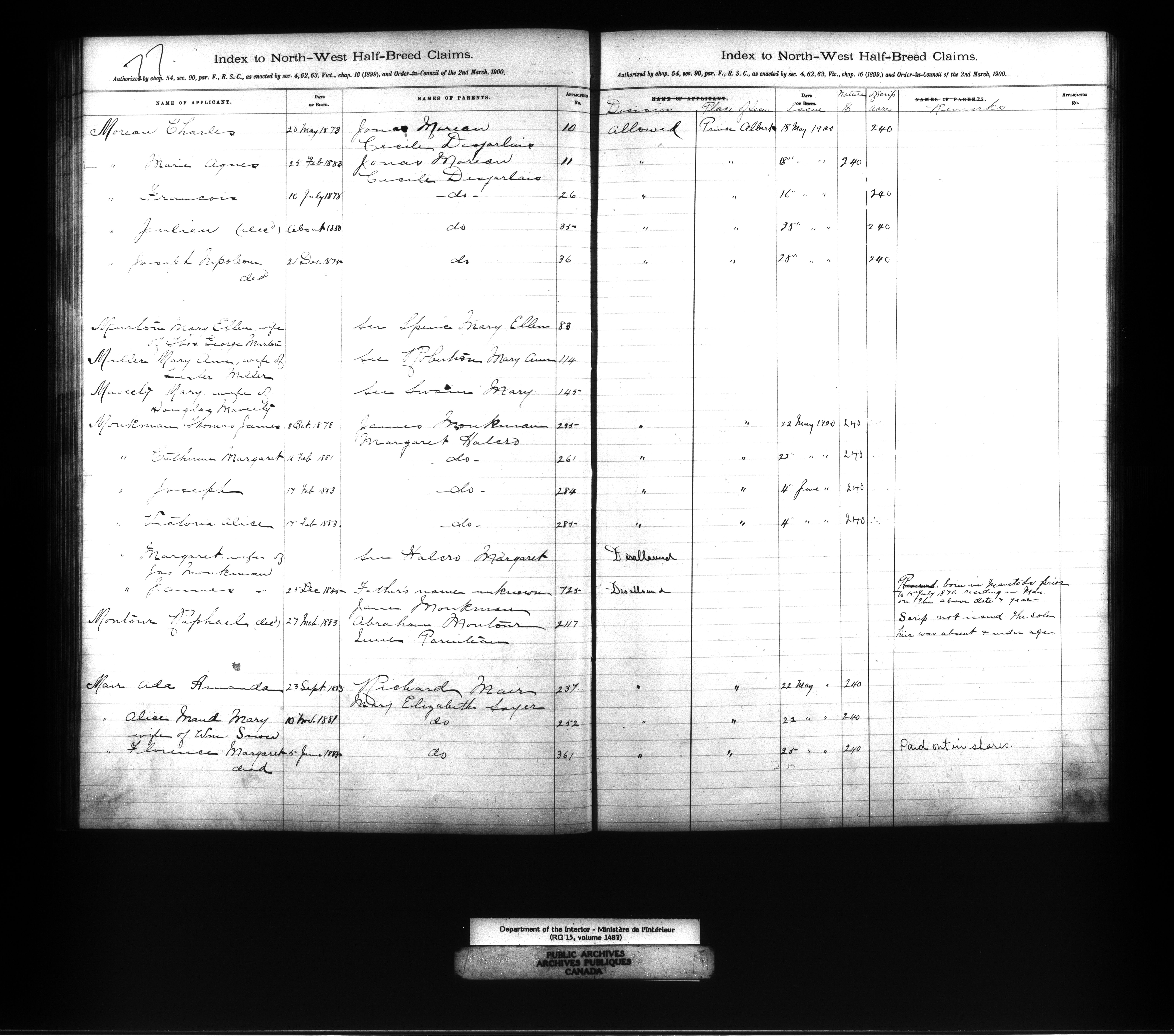 Department of the Interior : Registers and indexes relating to Métis and Original White Settlers land records, 1877-1927 - 11874