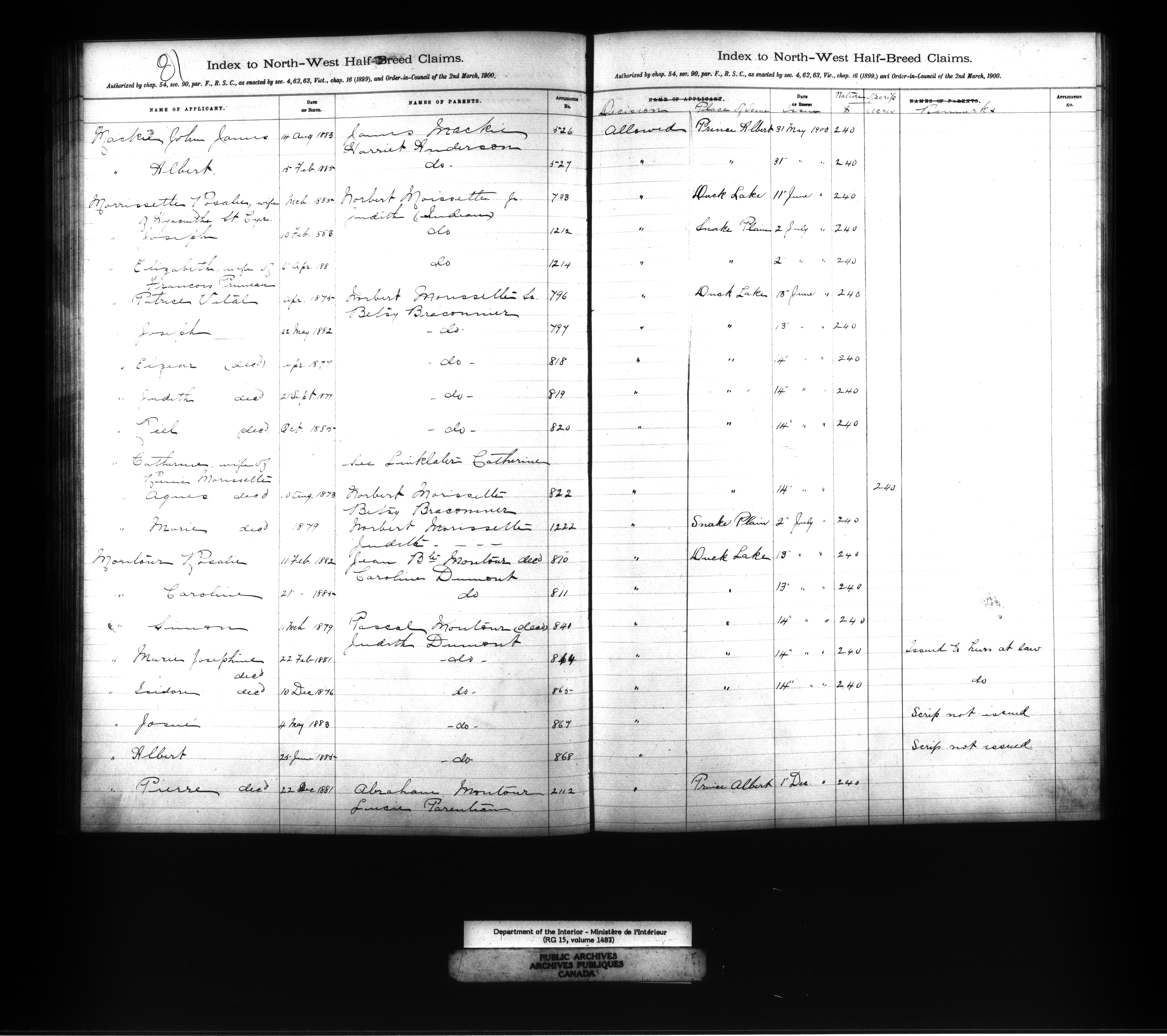 Department of the Interior : Registers and indexes relating to Métis and Original White Settlers land records, 1877-1927 - 11874