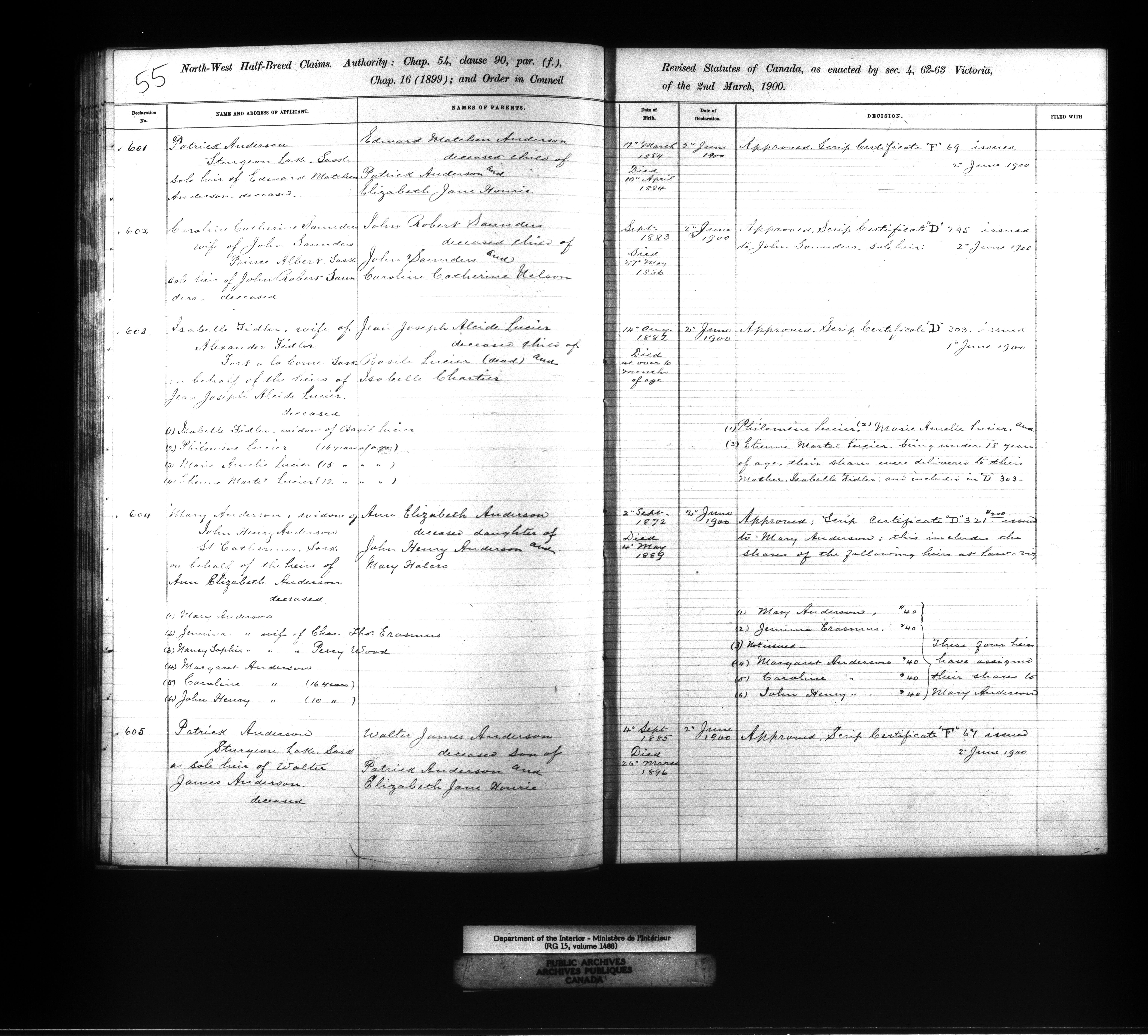 Department of the Interior : Registers and indexes relating to Métis and Original White Settlers land records, 1877-1927 : C-11875