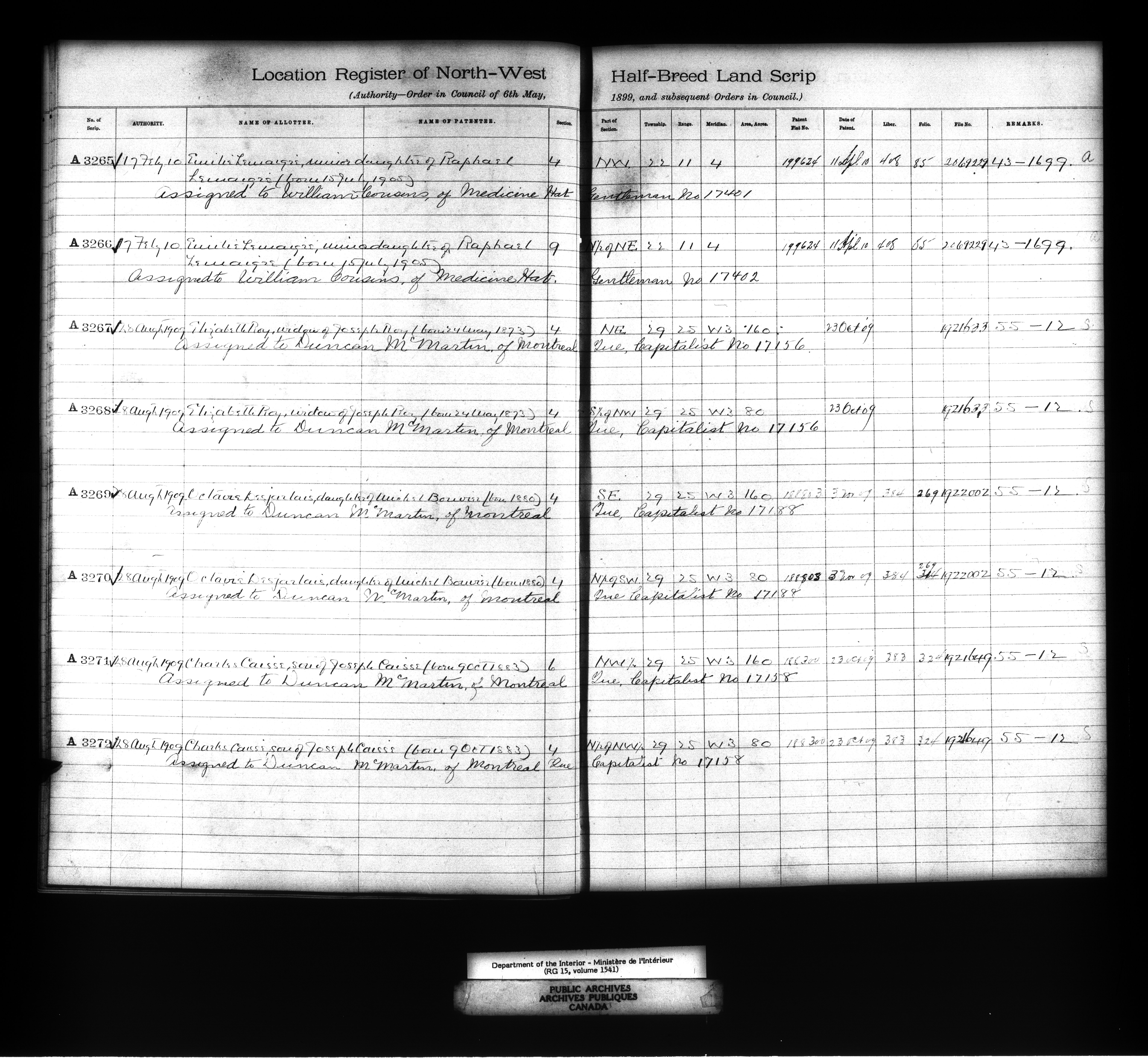 Department of the Interior : Registers and indexes relating to Métis and Original White Settlers land records, 1877-1927 - 11882