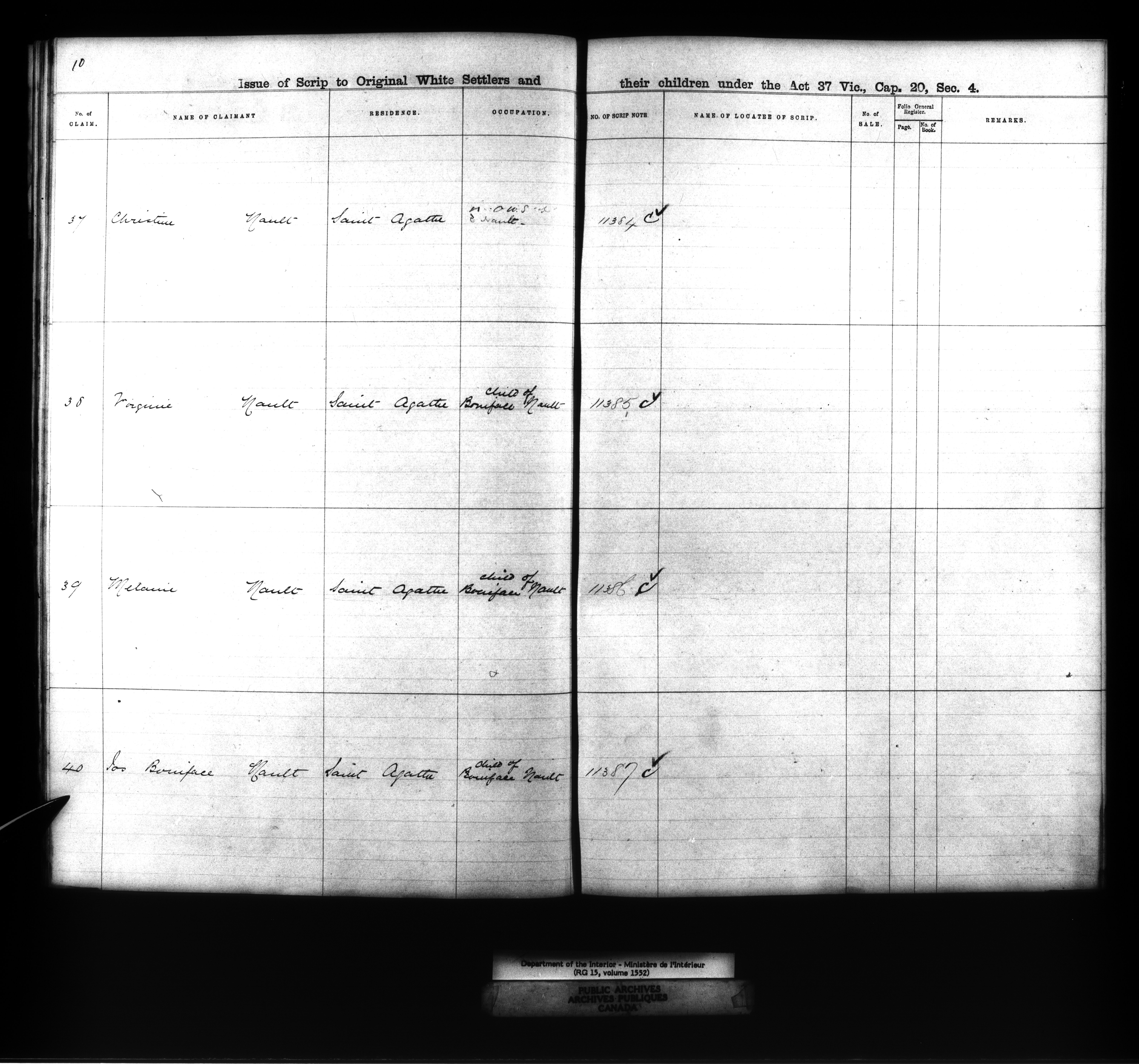 Dominion Lands branch : Manitoba parish registers used to award Métis land grants, 1875-80 - 11885