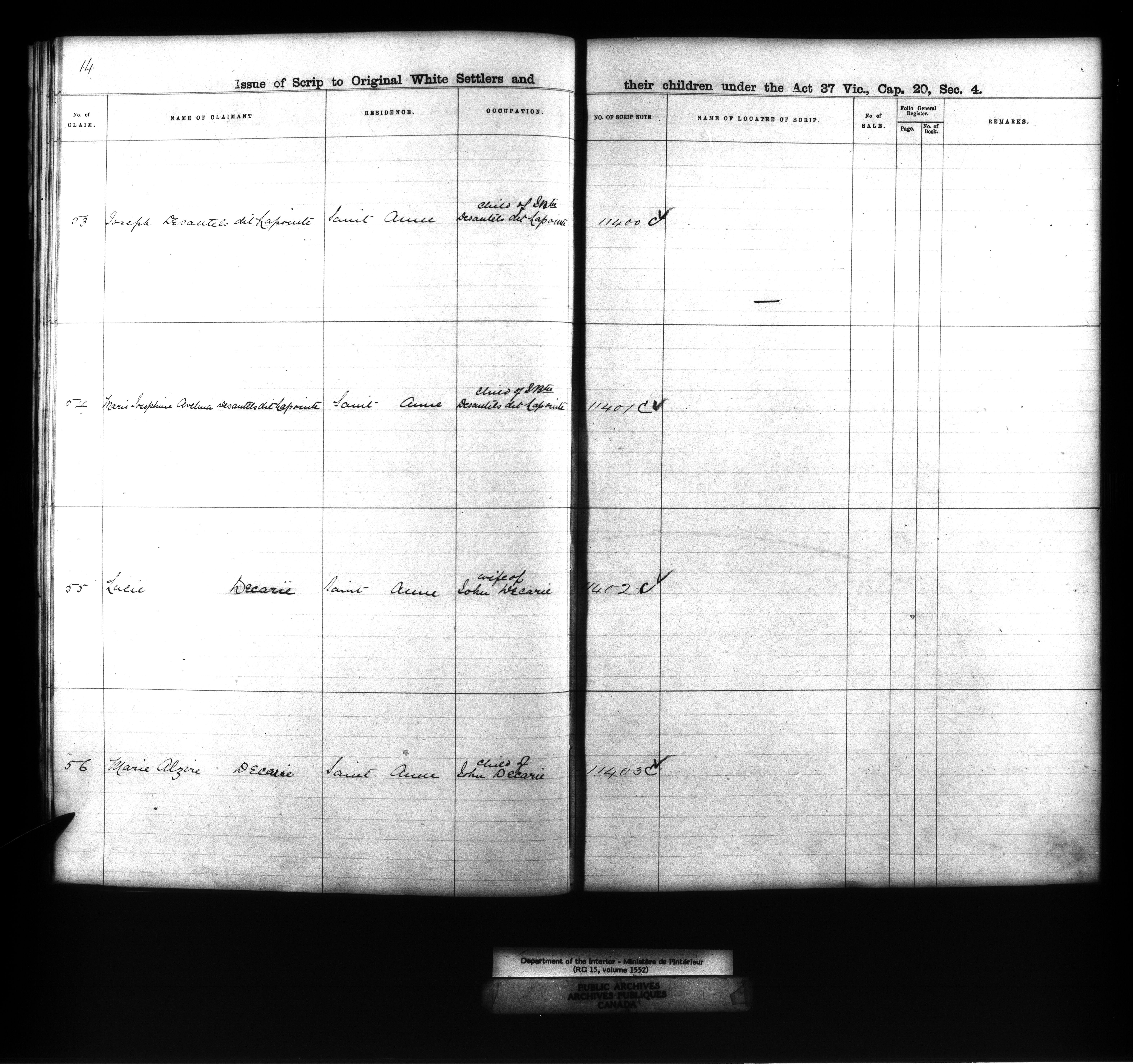 Dominion Lands branch : Manitoba parish registers used to award Métis land grants, 1875-80 - 11885