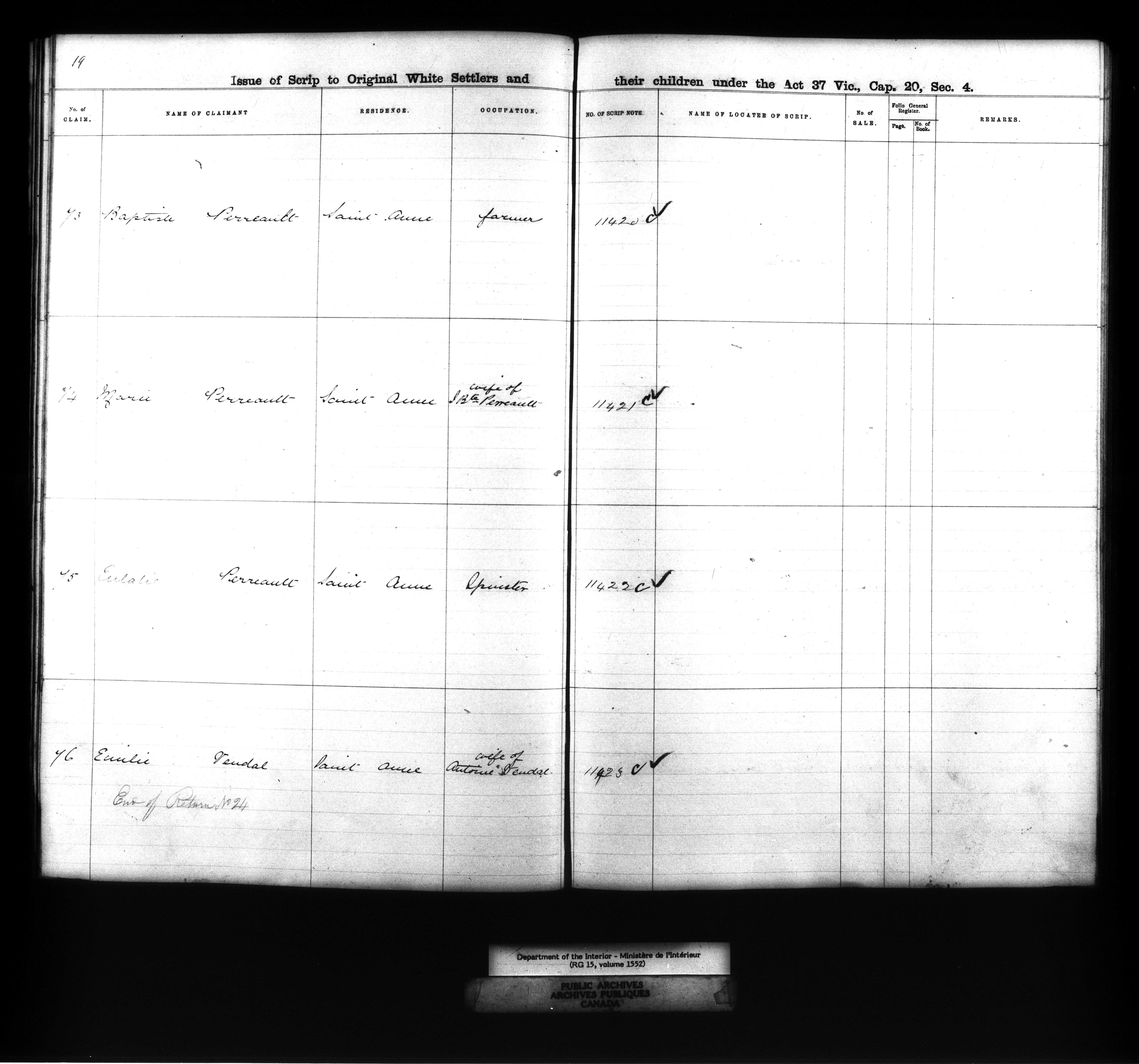 Dominion Lands branch : Manitoba parish registers used to award Métis land grants, 1875-80 - 11885