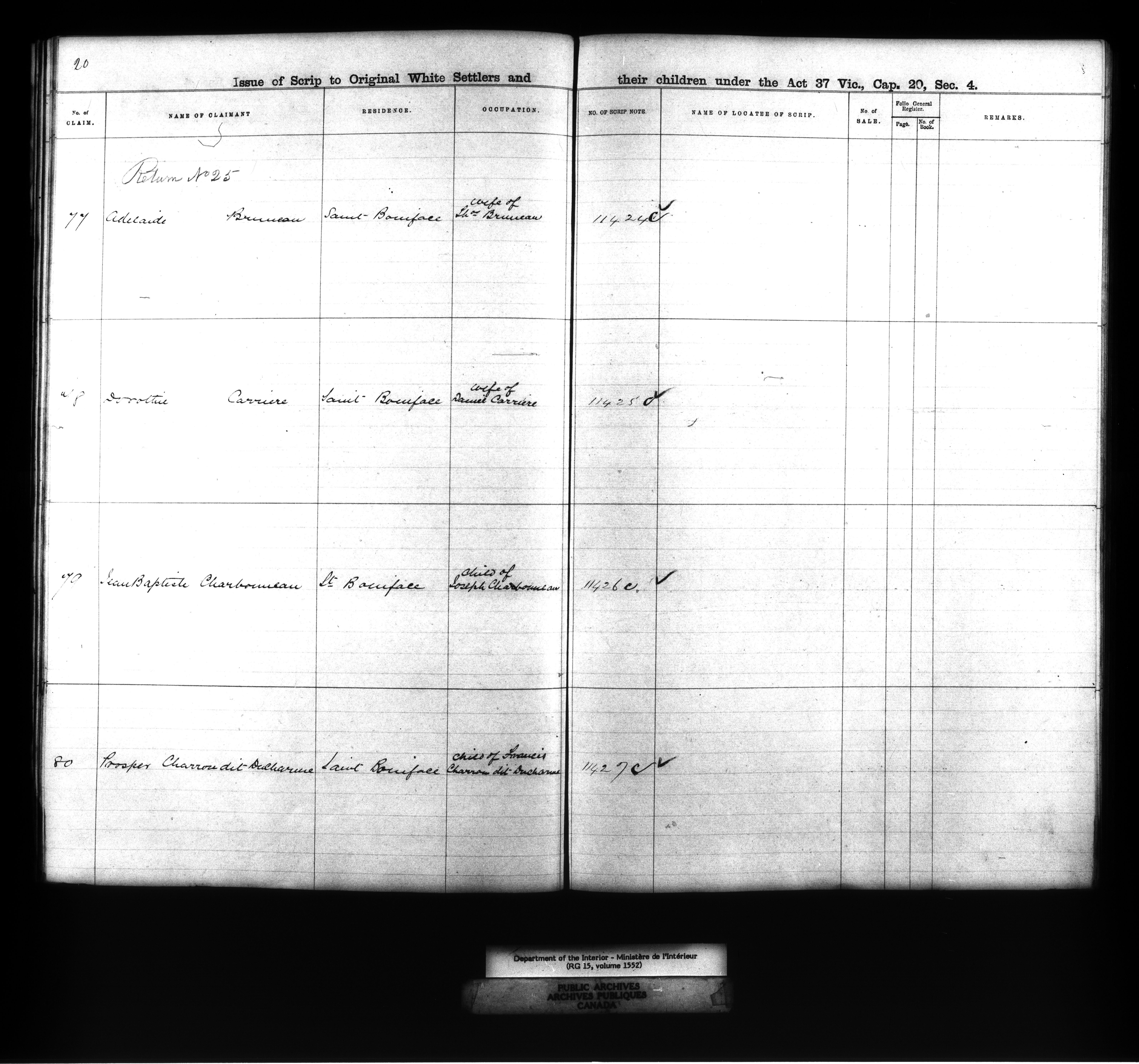 Dominion Lands branch : Manitoba parish registers used to award Métis land grants, 1875-80 - 11885