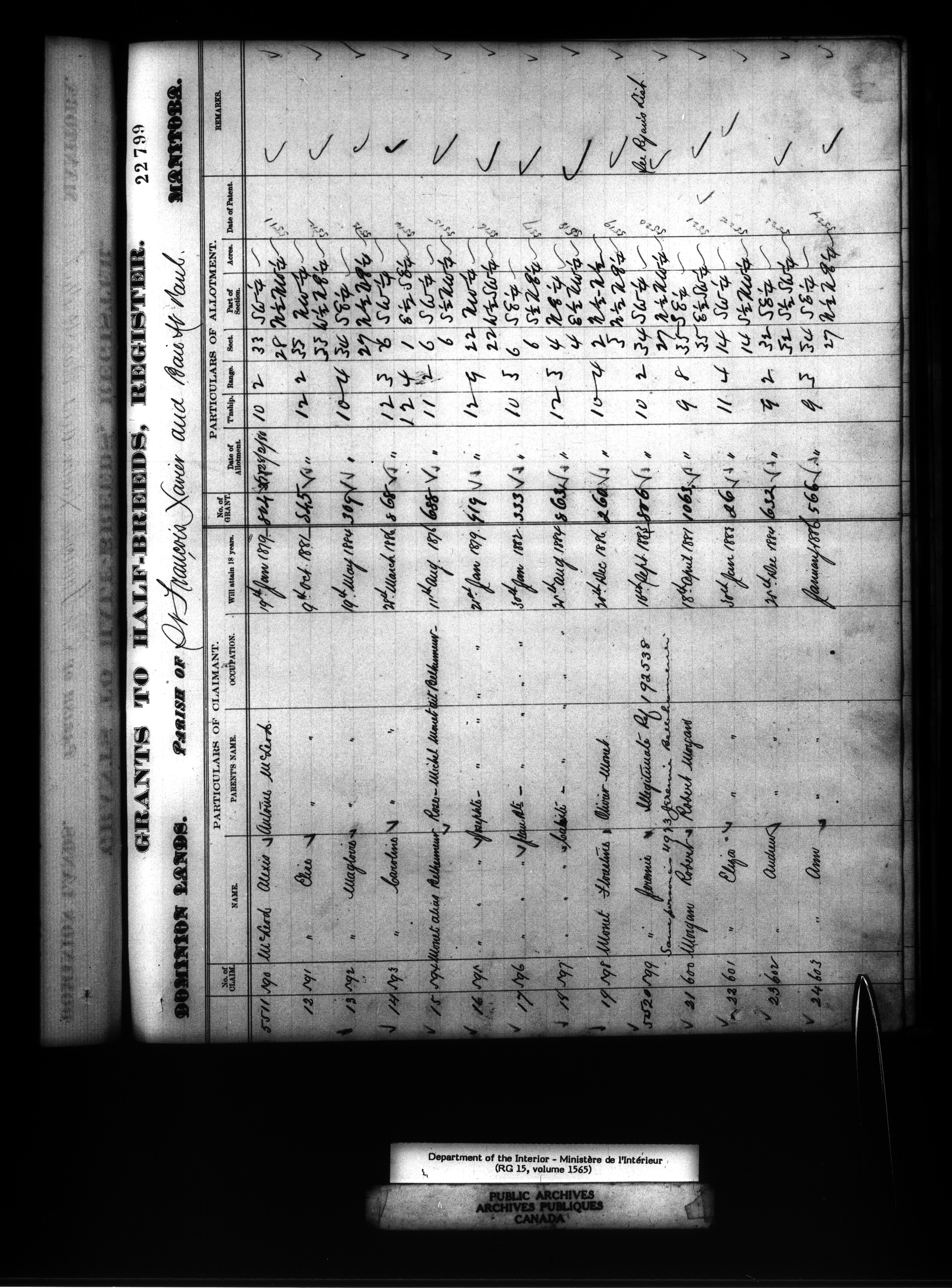 Dominion Lands branch : Manitoba parish registers used to award Métis land grants, 1875-80 - 11885