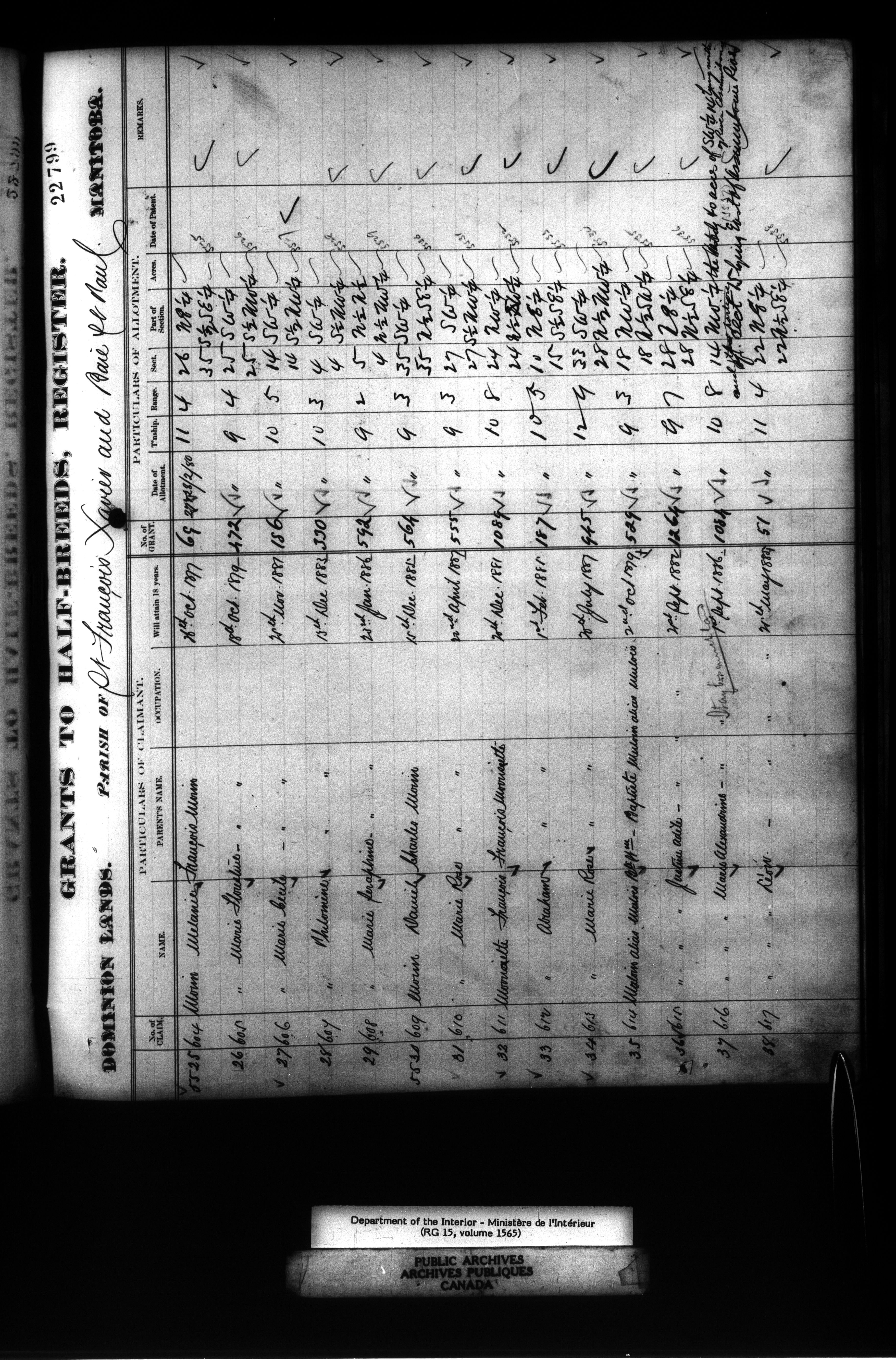 Dominion Lands branch : Manitoba parish registers used to award Métis land grants, 1875-80 - 11885