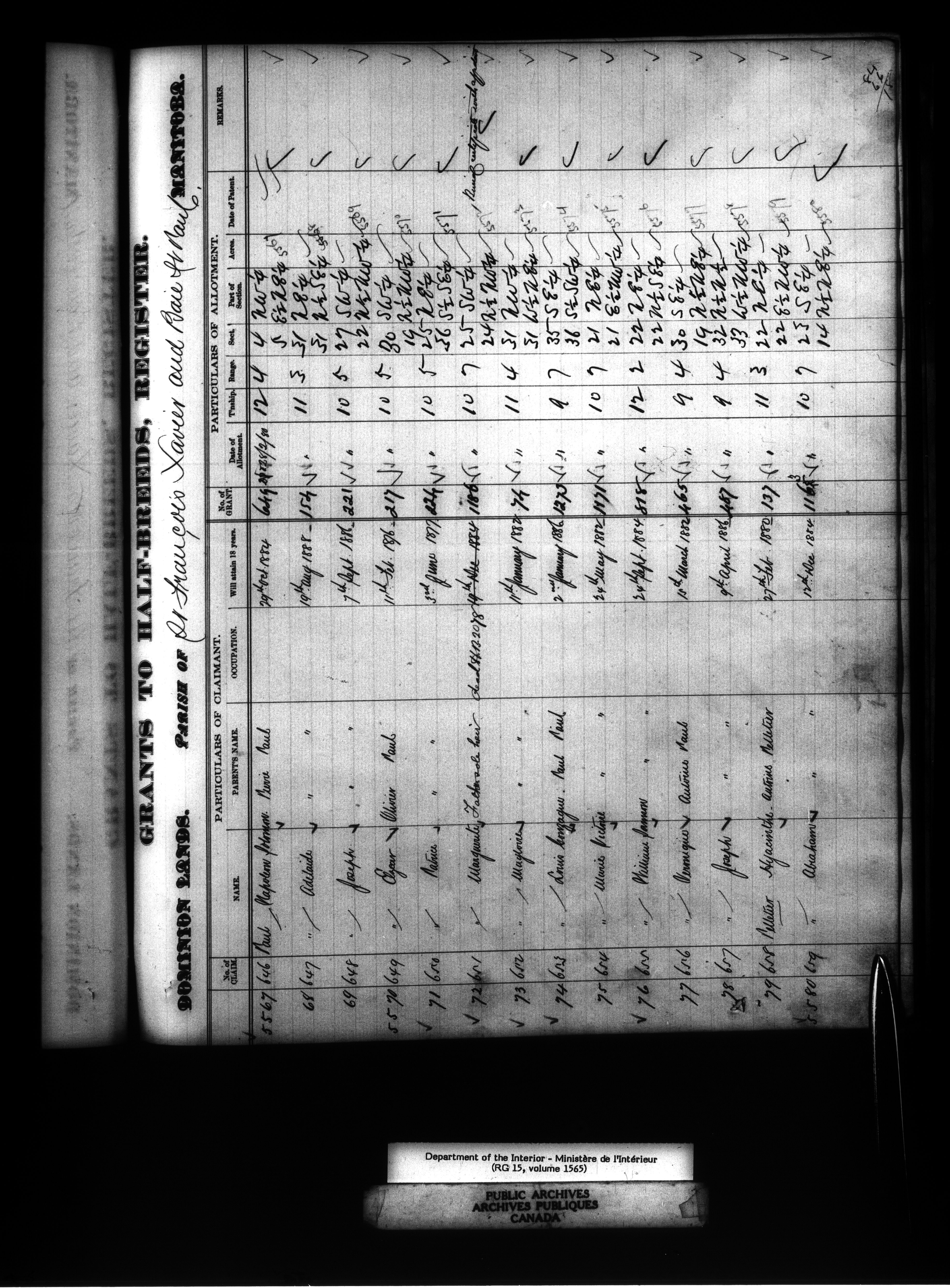 Dominion Lands branch : Manitoba parish registers used to award Métis land grants, 1875-80 - 11885
