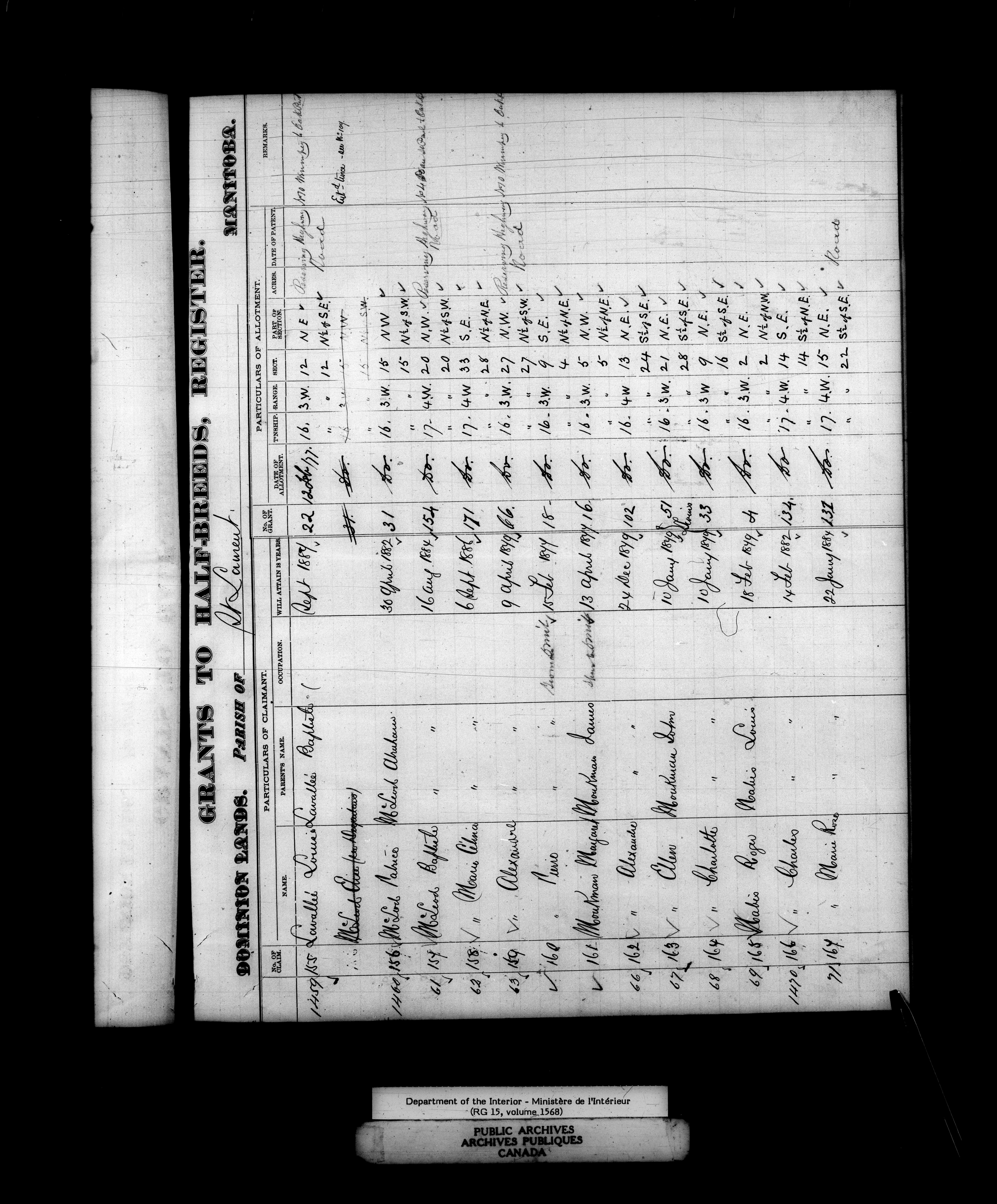 Dominion Lands branch: Manitoba parish registers used to award Métis land grants, 1875-80 - 11886