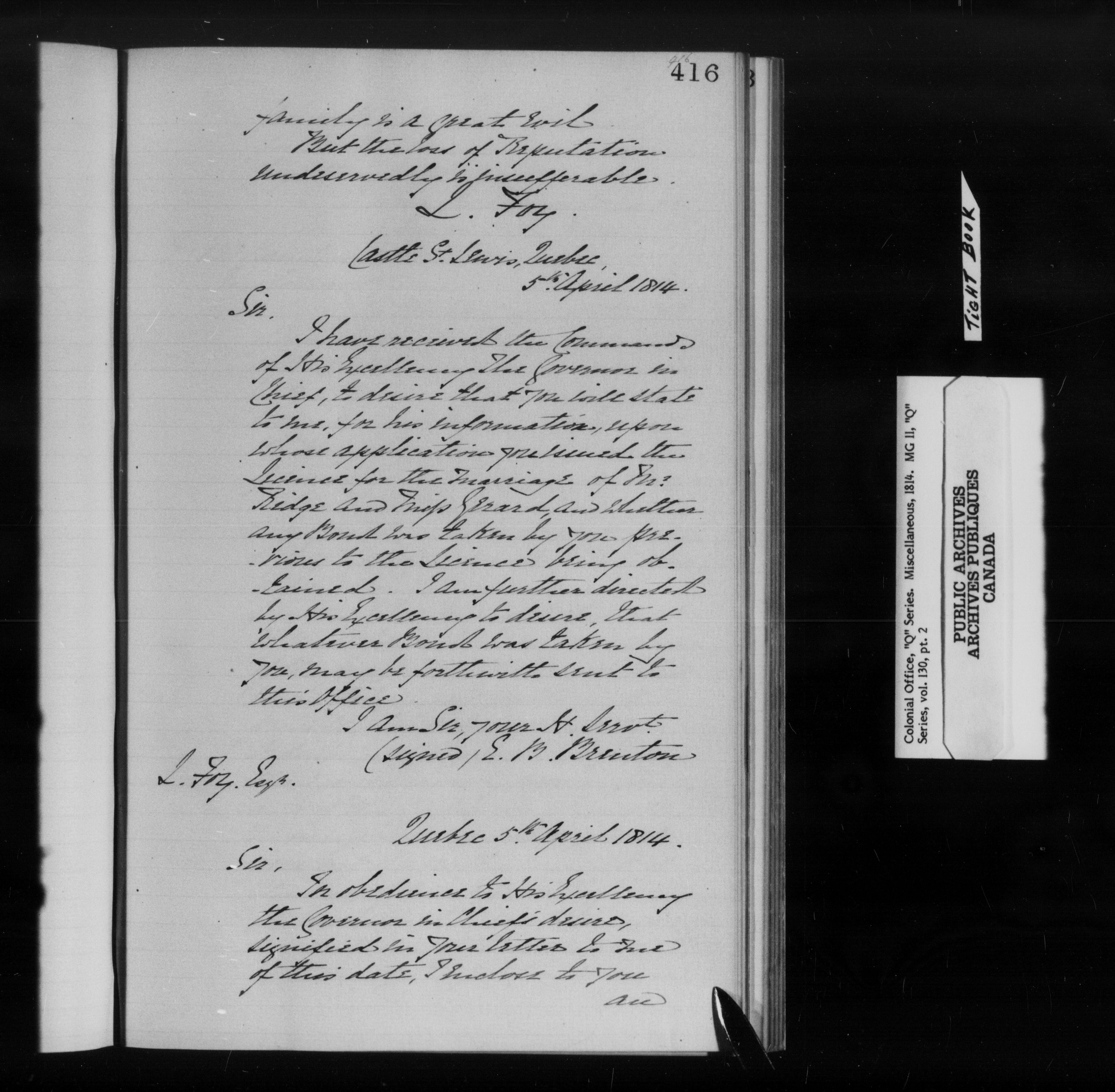 Great Britain. Colonial Office : Canada, formerly British North America, original correspondence, CO 42, "Q" Series - 11921
