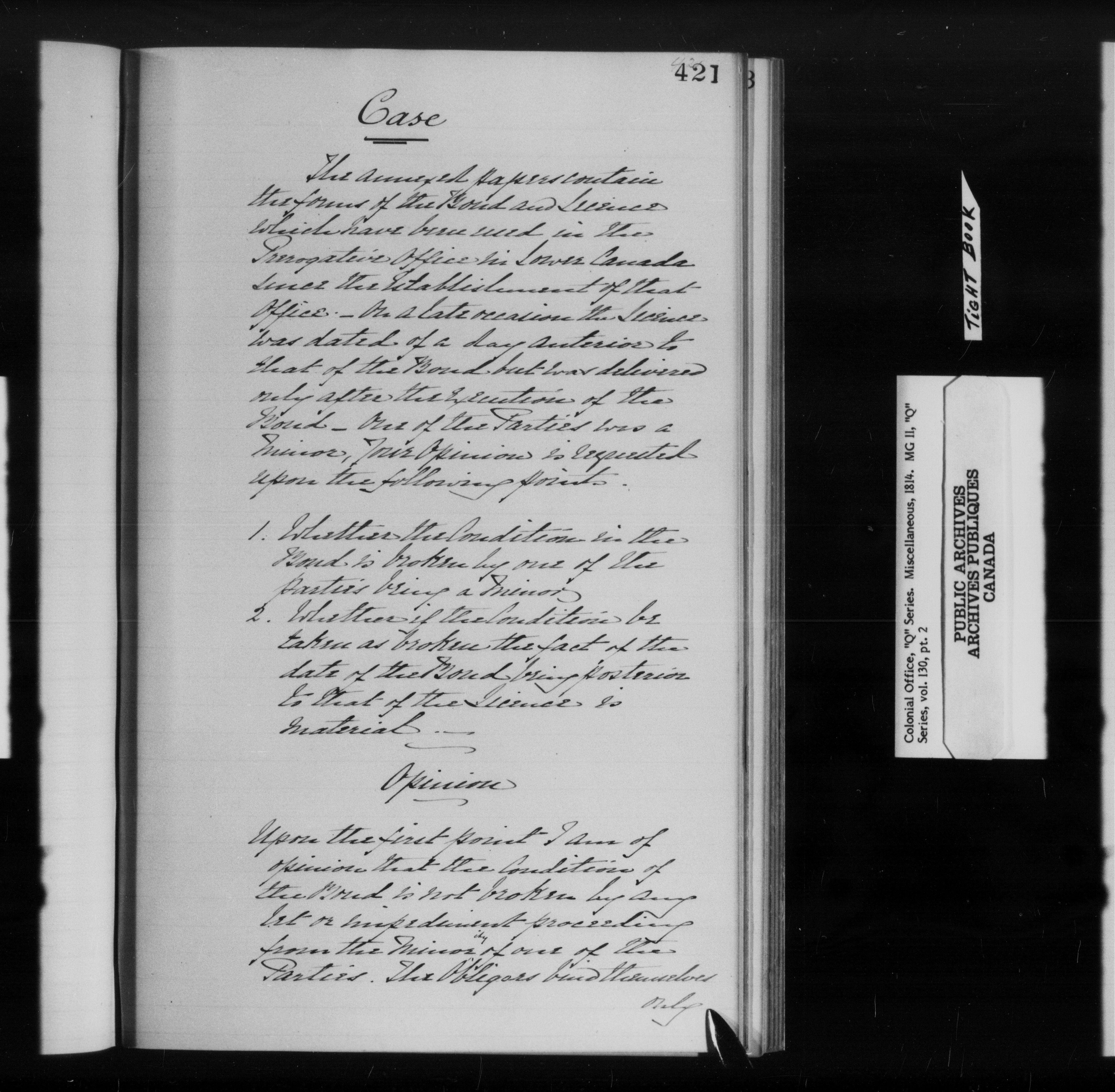 Great Britain. Colonial Office : Canada, formerly British North America, original correspondence, CO 42, "Q" Series - 11921