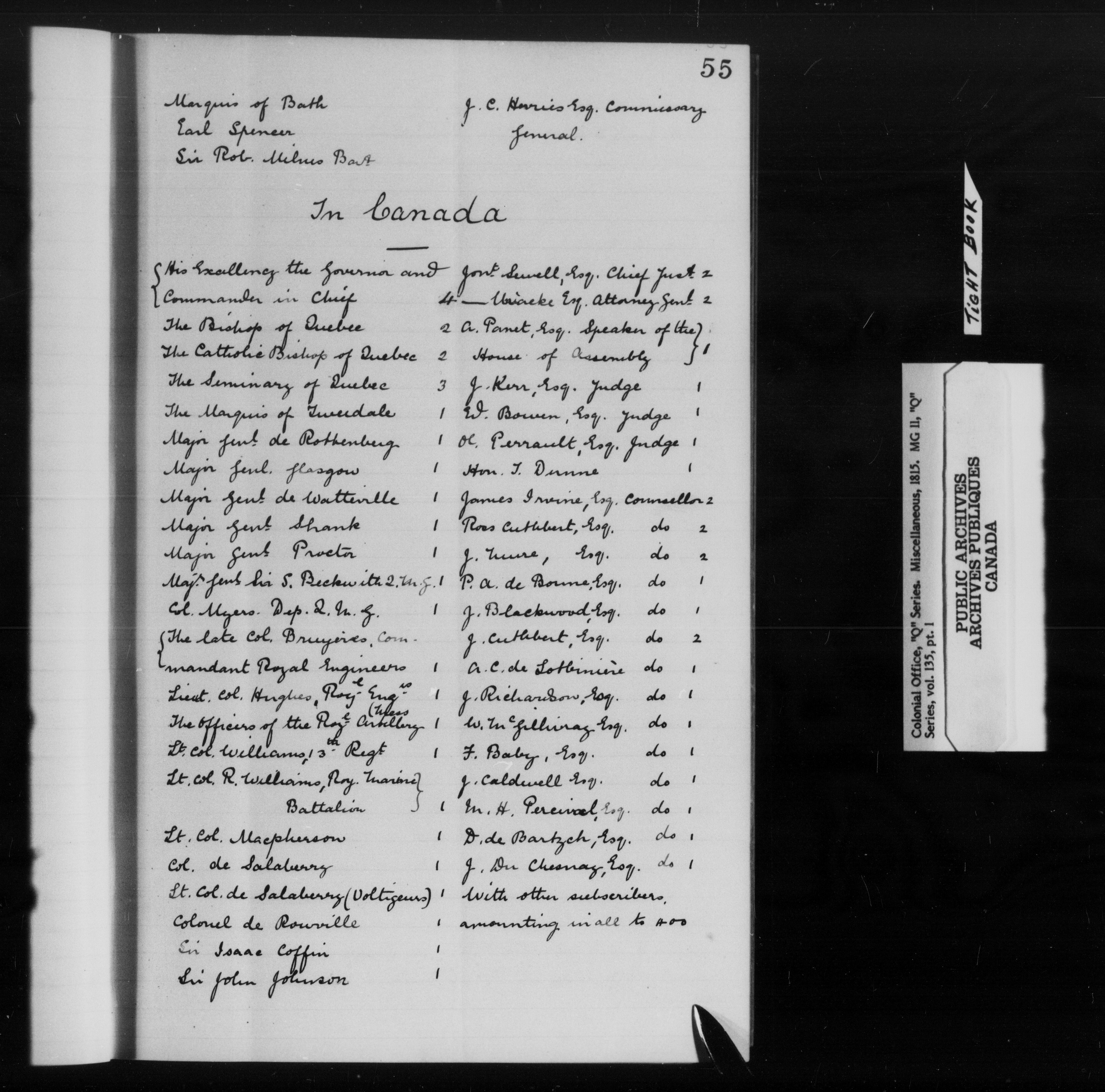 Great Britain. Colonial Office : Canada, formerly British North America, original correspondence, CO 42, "Q" Series - 11923