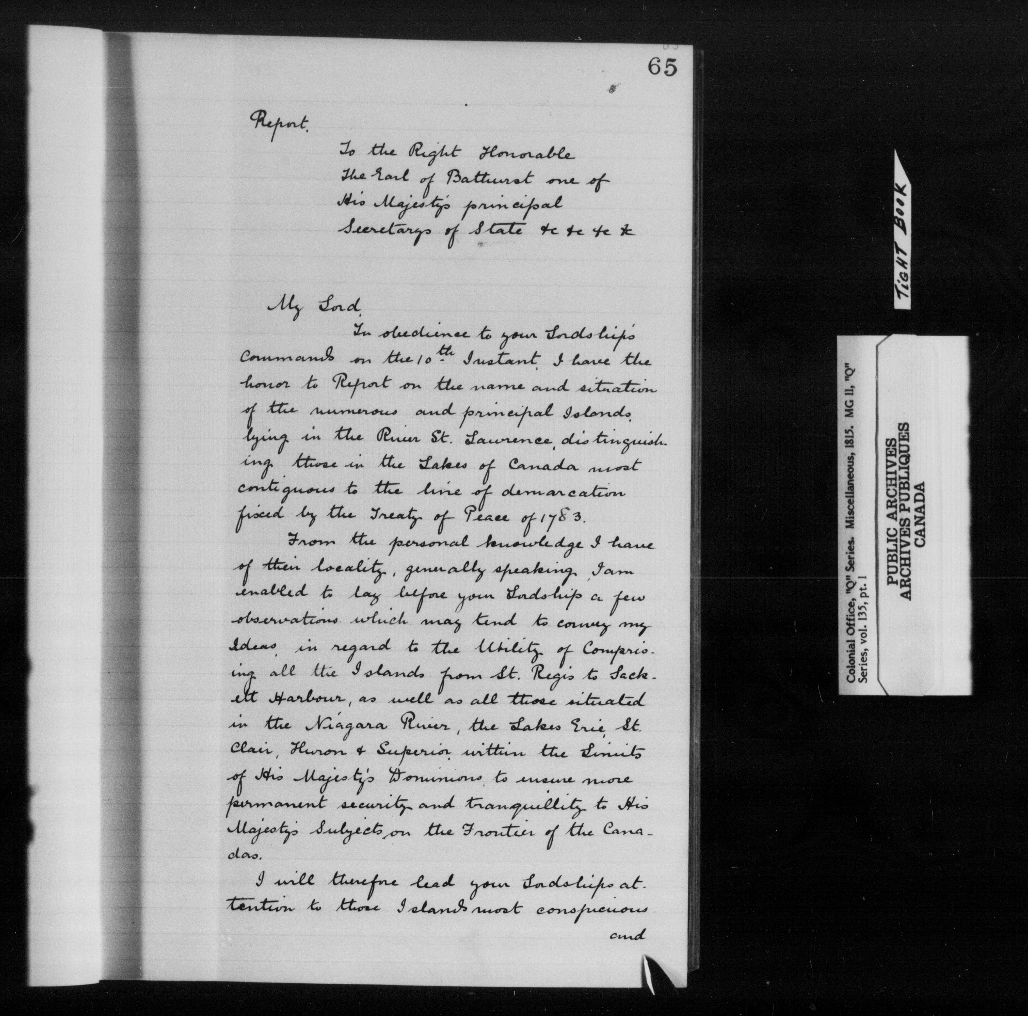 Great Britain. Colonial Office : Canada, formerly British North America, original correspondence, CO 42, "Q" Series - 11923