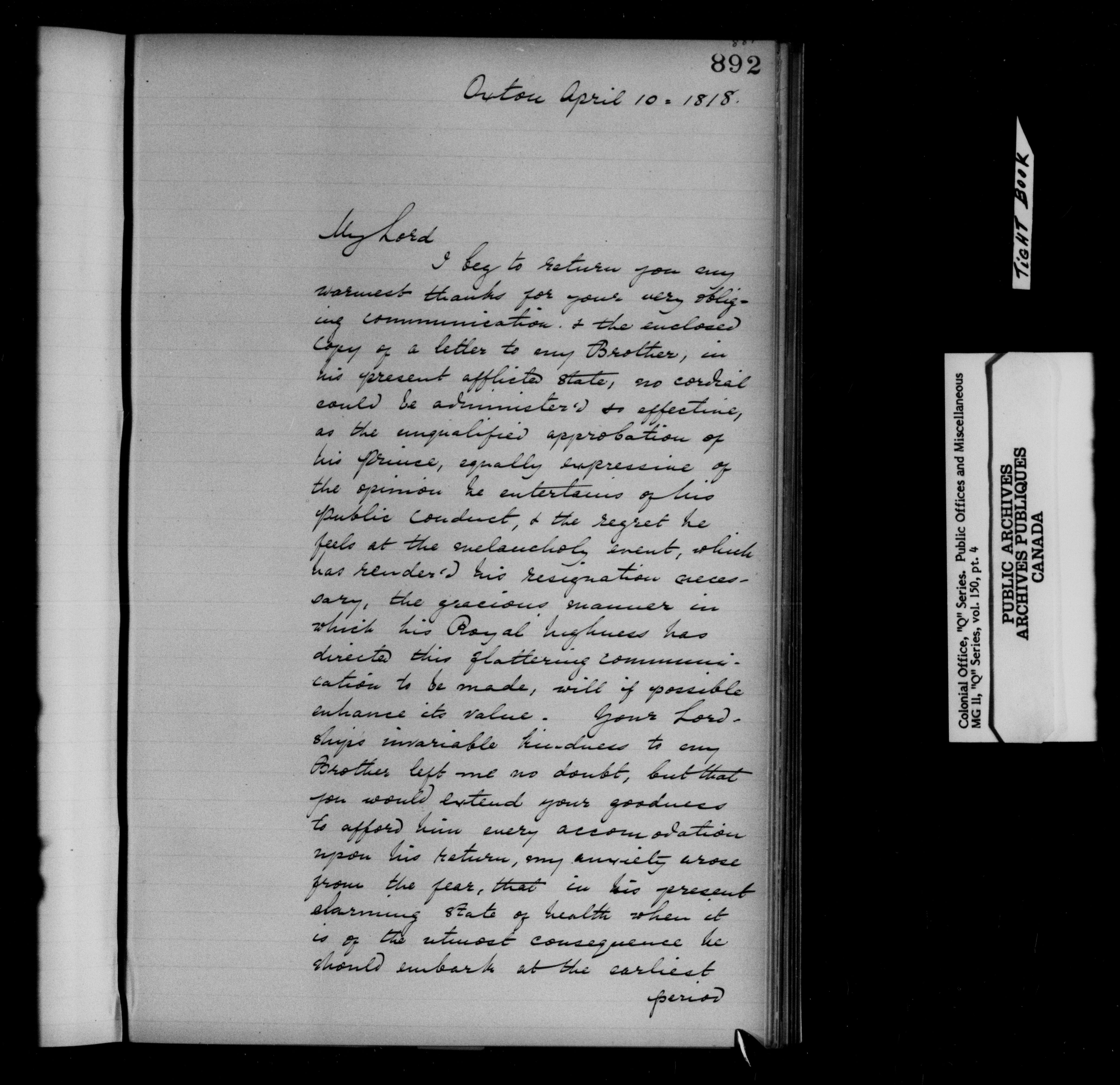 Great Britain. Colonial Office : Canada, formerly British North America, original correspondence, CO 42, "Q" Series - 11926
