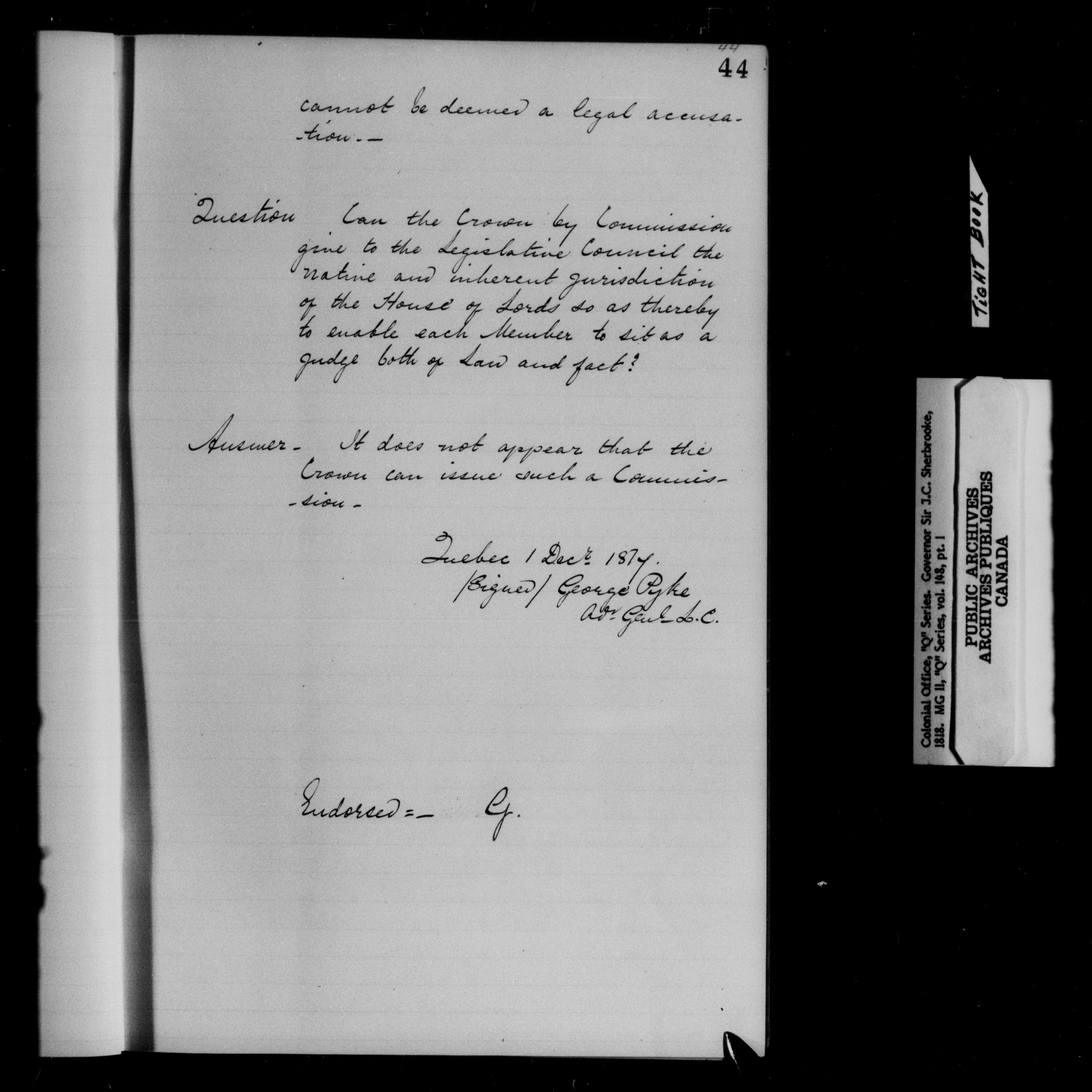 Great Britain. Colonial Office : Canada, formerly British North America, original correspondence, CO 42, "Q" Series - 11926