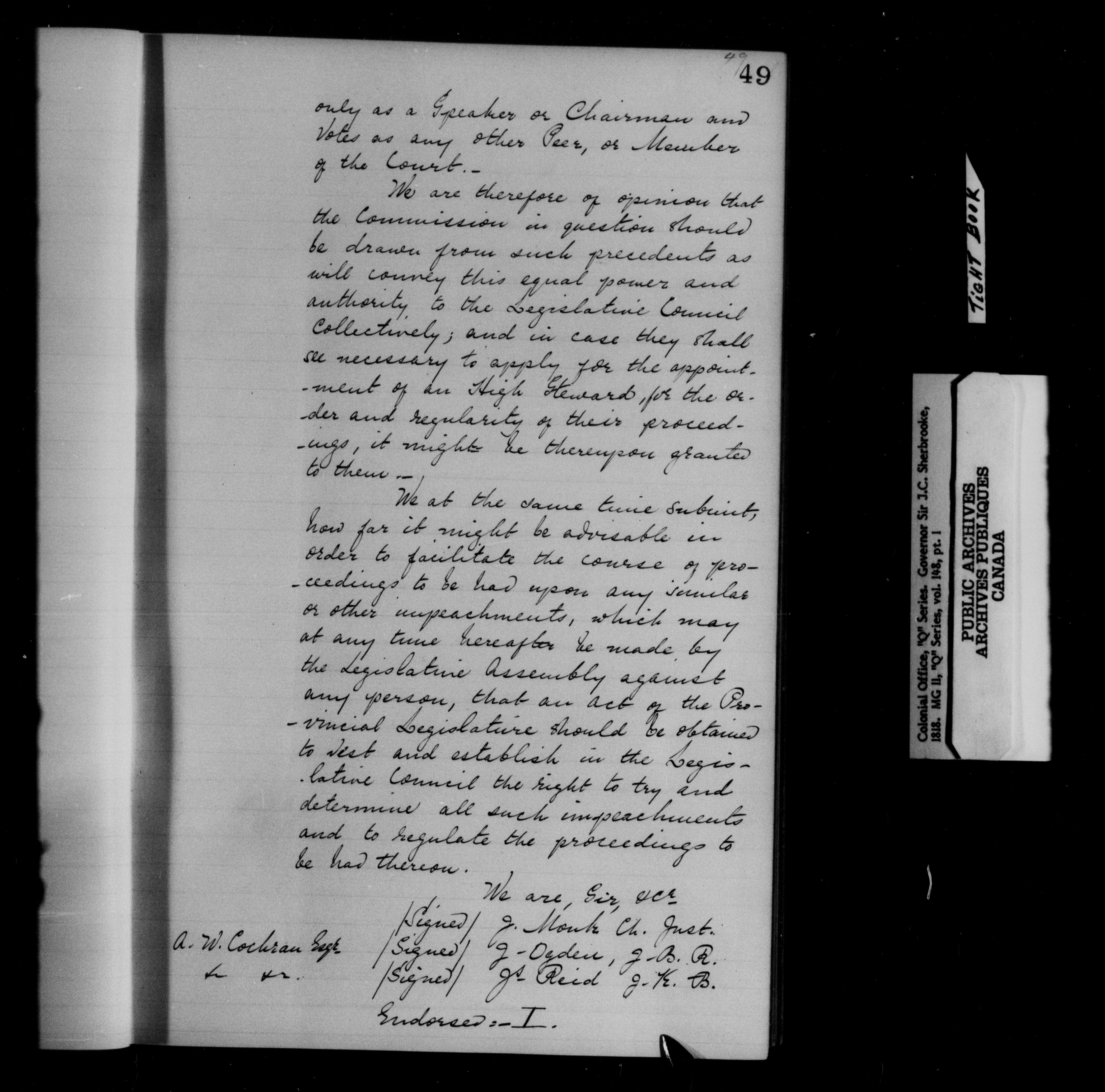 Great Britain. Colonial Office : Canada, formerly British North America, original correspondence, CO 42, "Q" Series - 11926