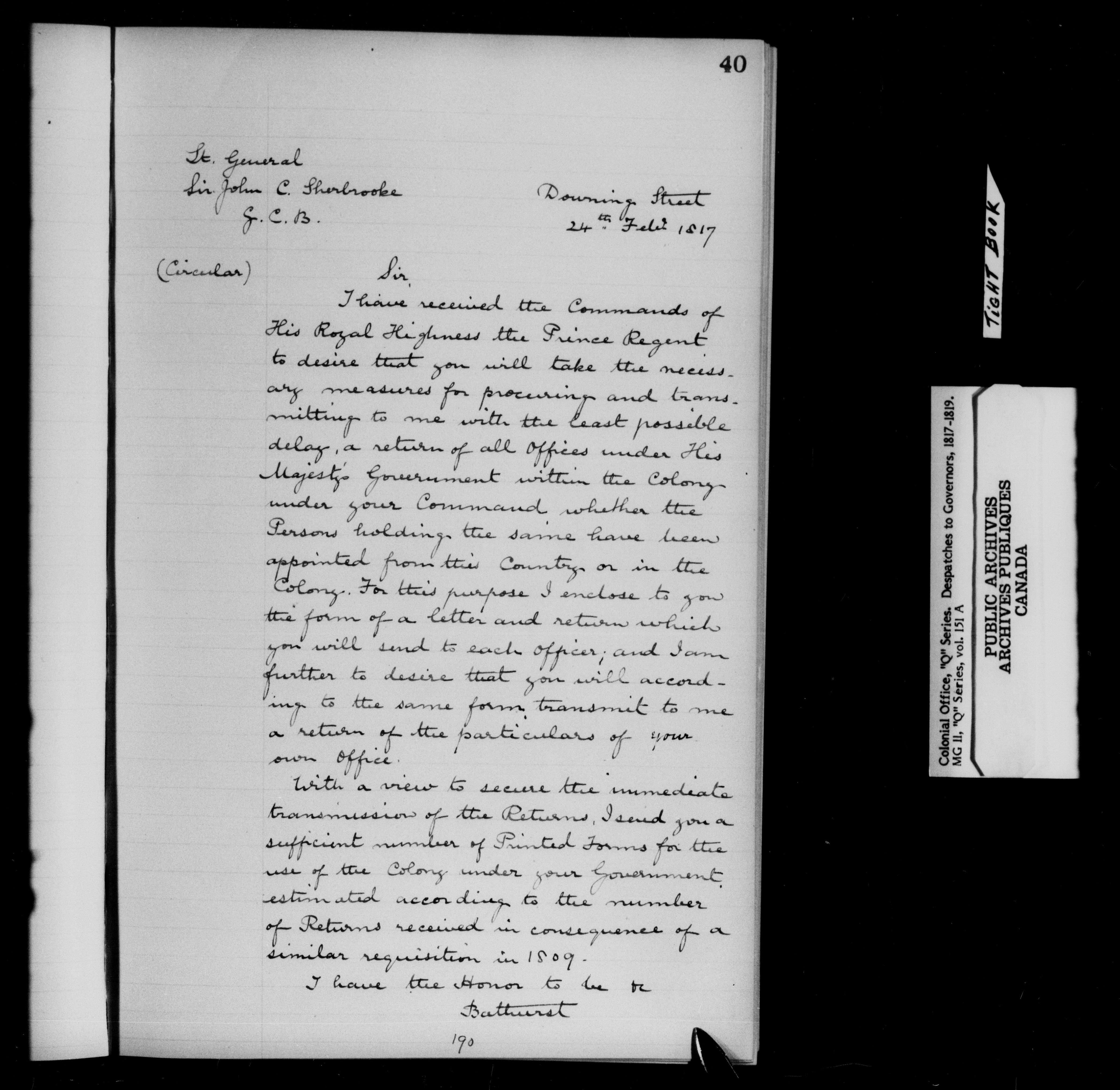 Great Britain. Colonial Office : Canada, formerly British North America, original correspondence, CO 42, "Q" Series - 11927