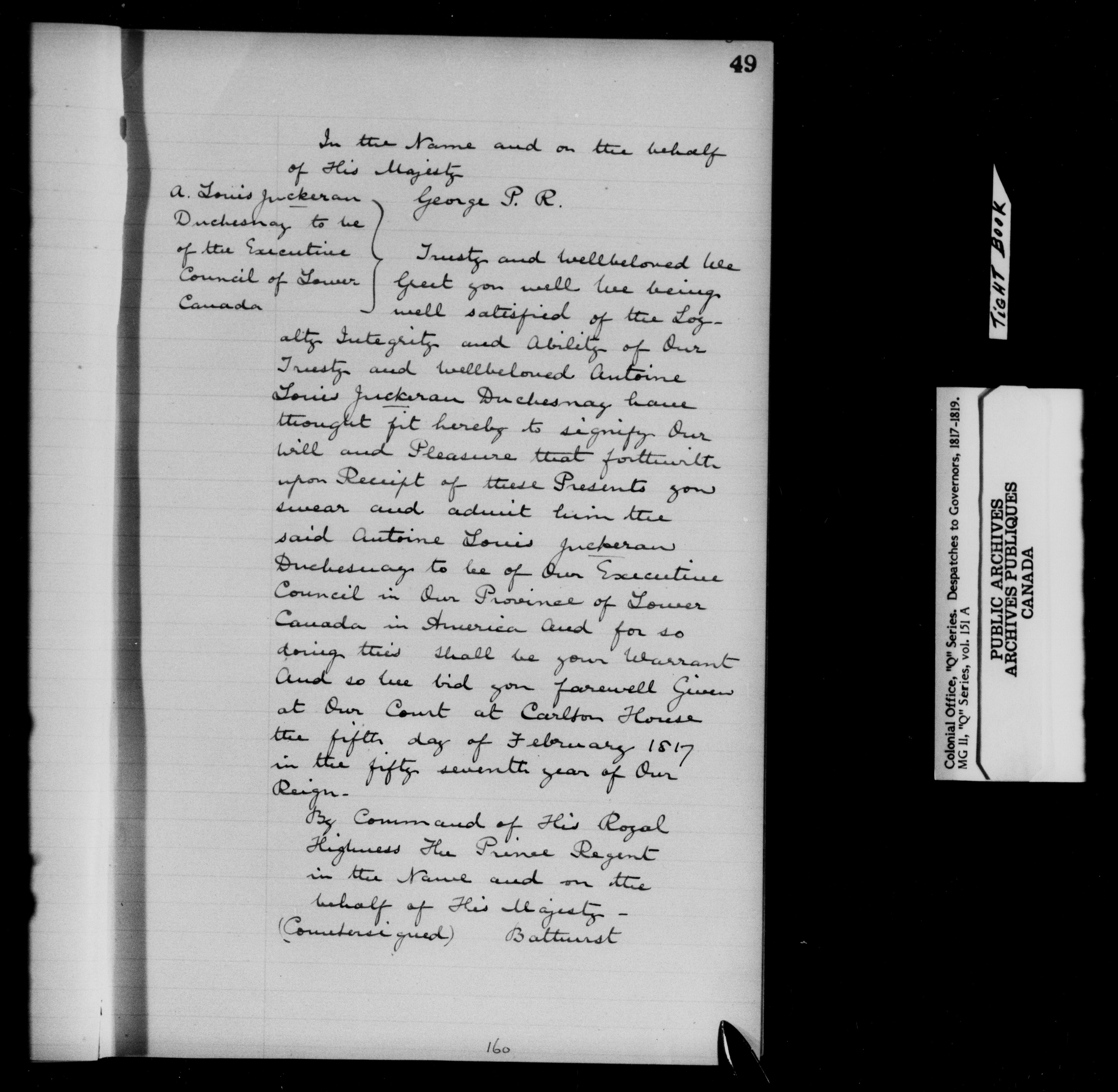 Great Britain. Colonial Office : Canada, formerly British North America, original correspondence, CO 42, "Q" Series - 11927