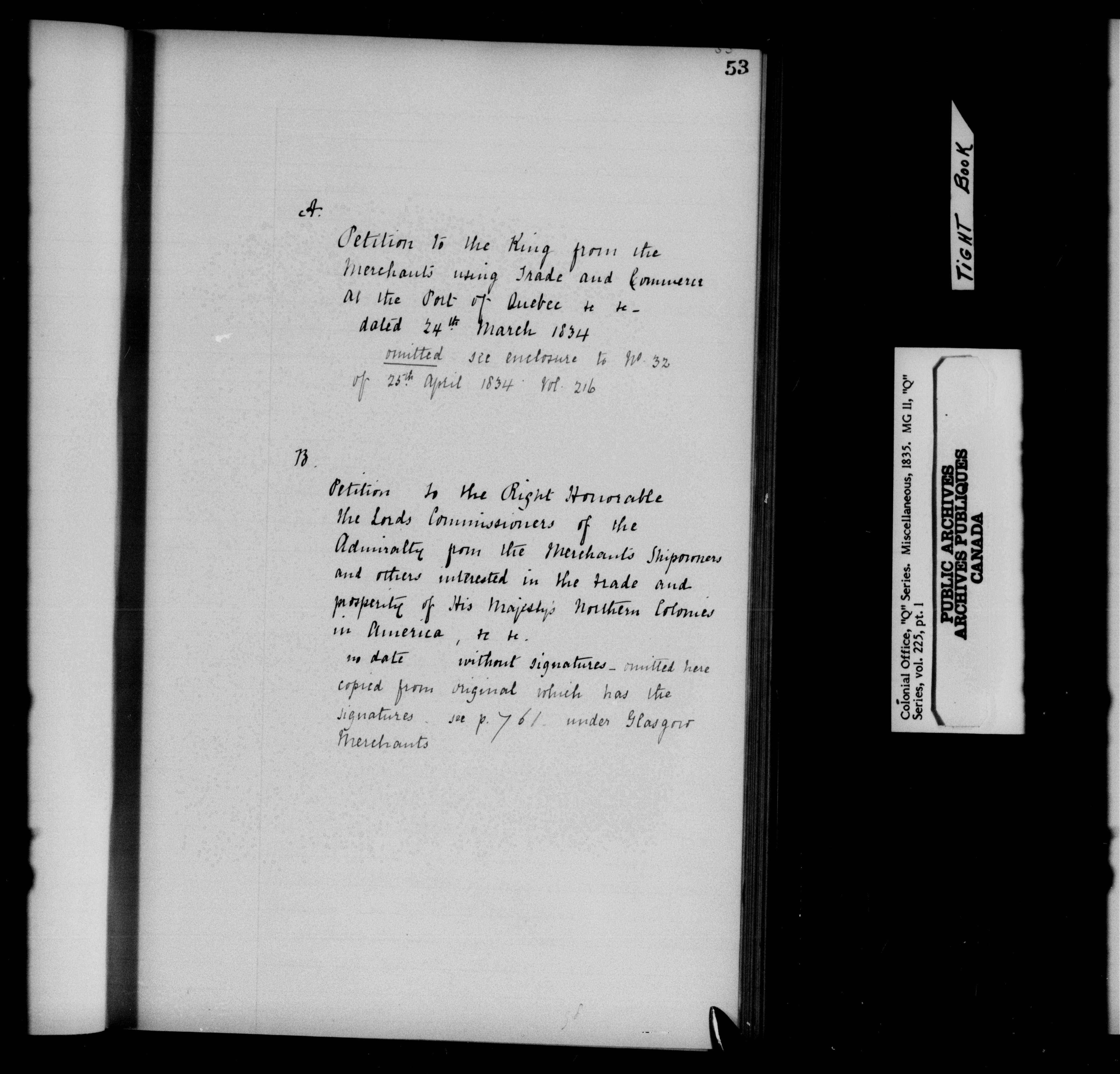 Great Britain. Colonial Office : Canada, formerly British North America, original correspondence, CO 42, "Q" Series - 11954