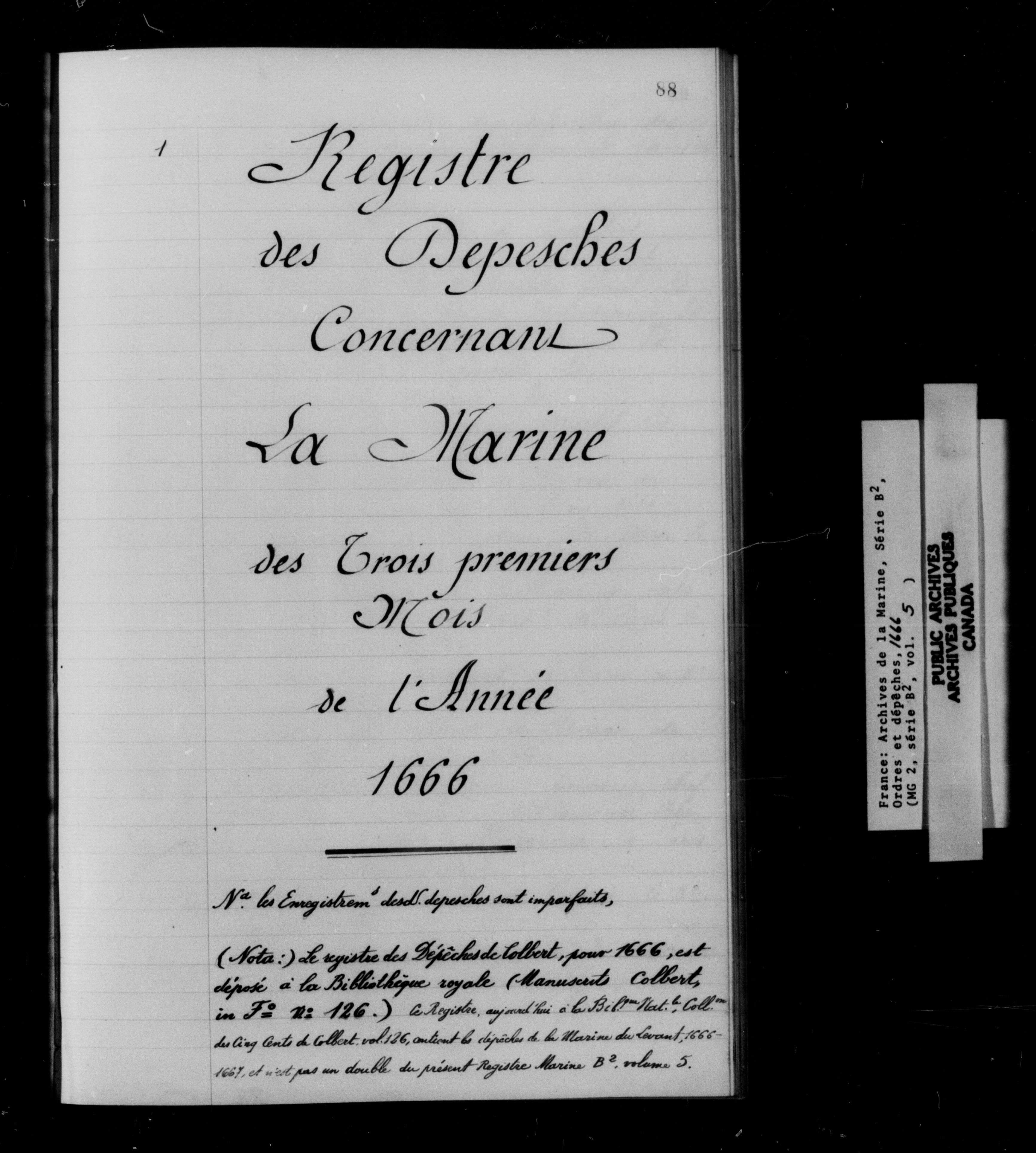 France : Archives de la Marine, Série B2, Ordres et dépêches - 11974