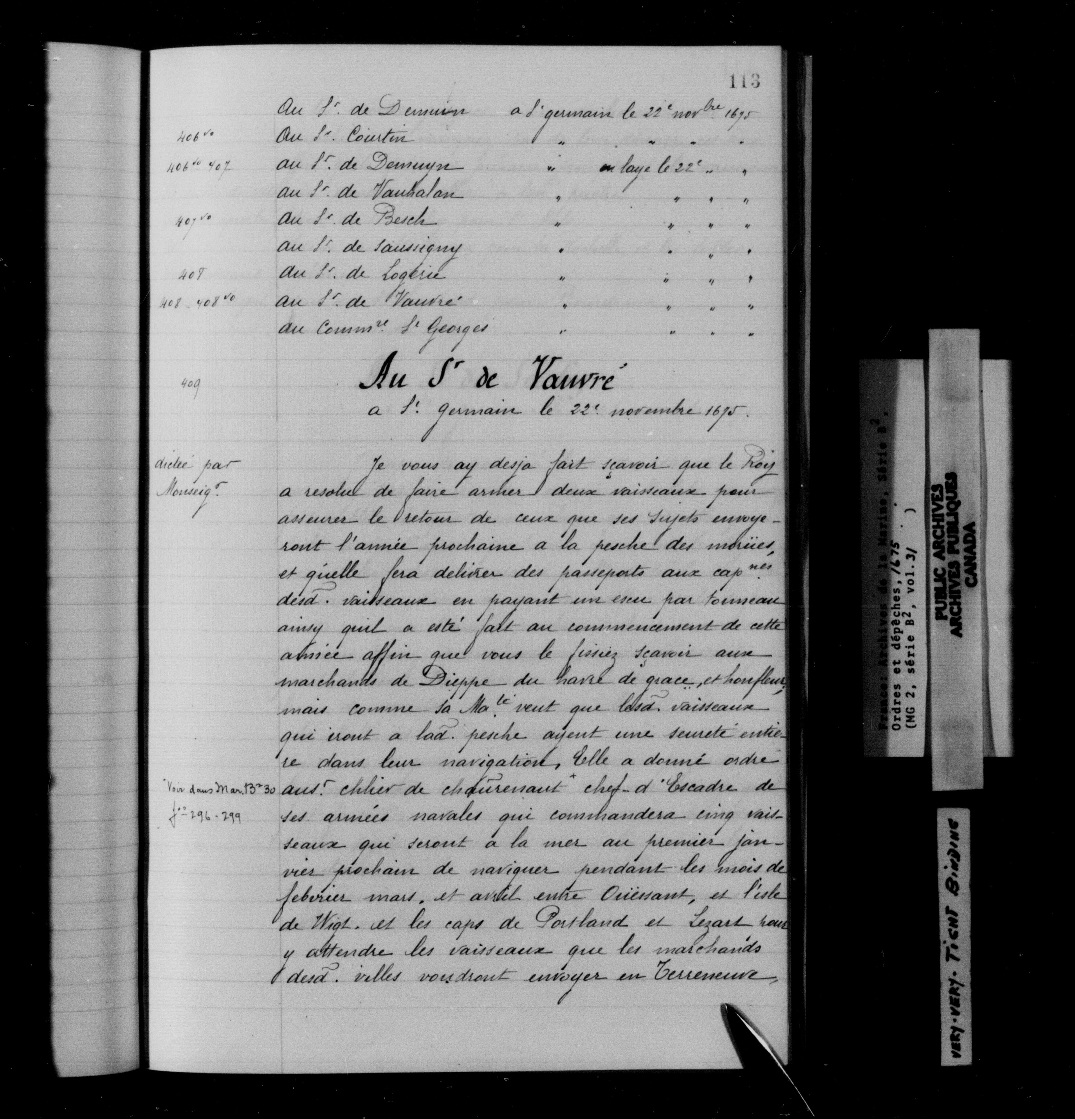 France : Archives de la Marine, Série B2, Ordres et dépêches - 11974