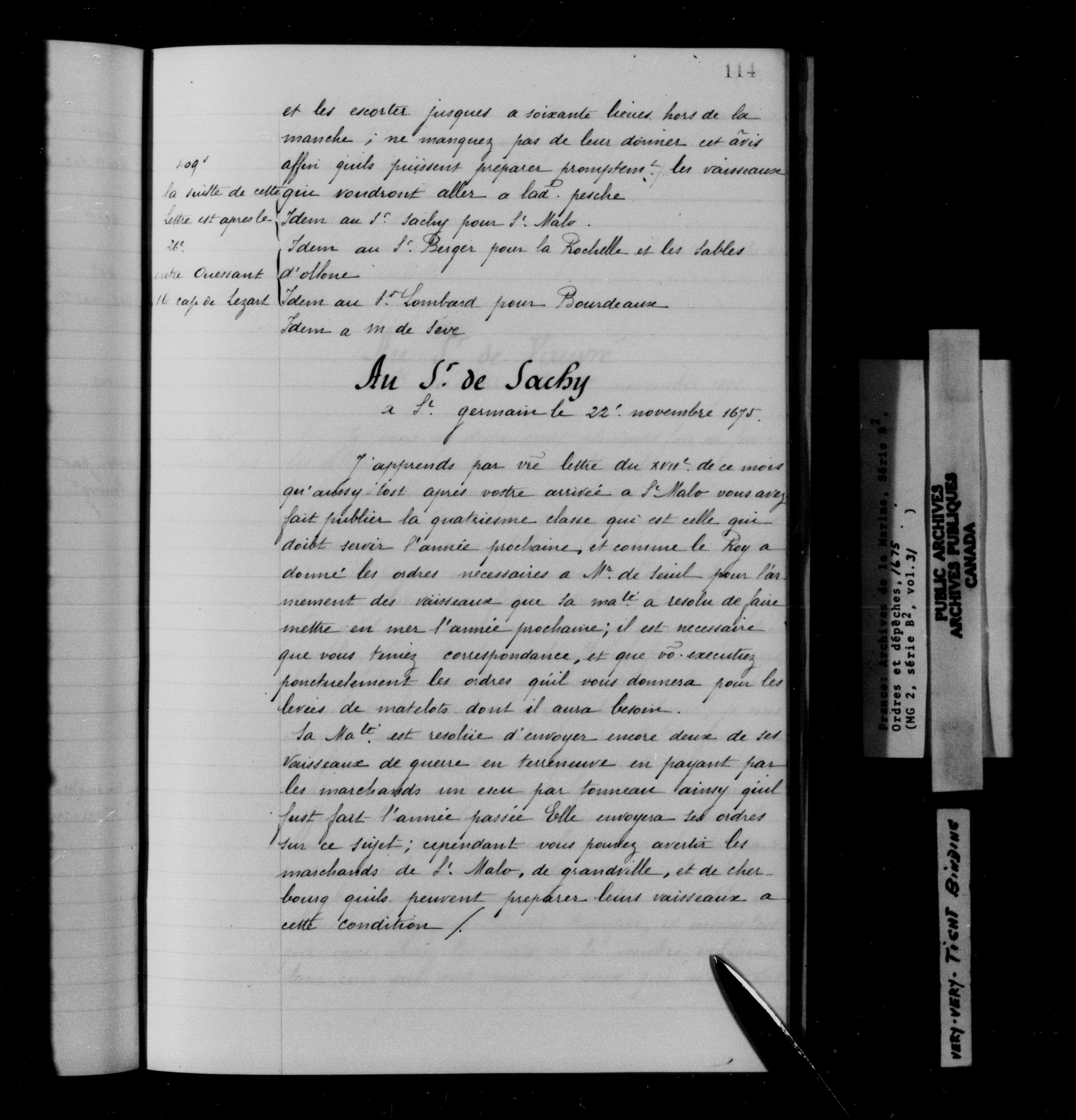 France. Archives de la Marine. Fonds de la Marine : Série B2, Ordres et dépêches : C-11974