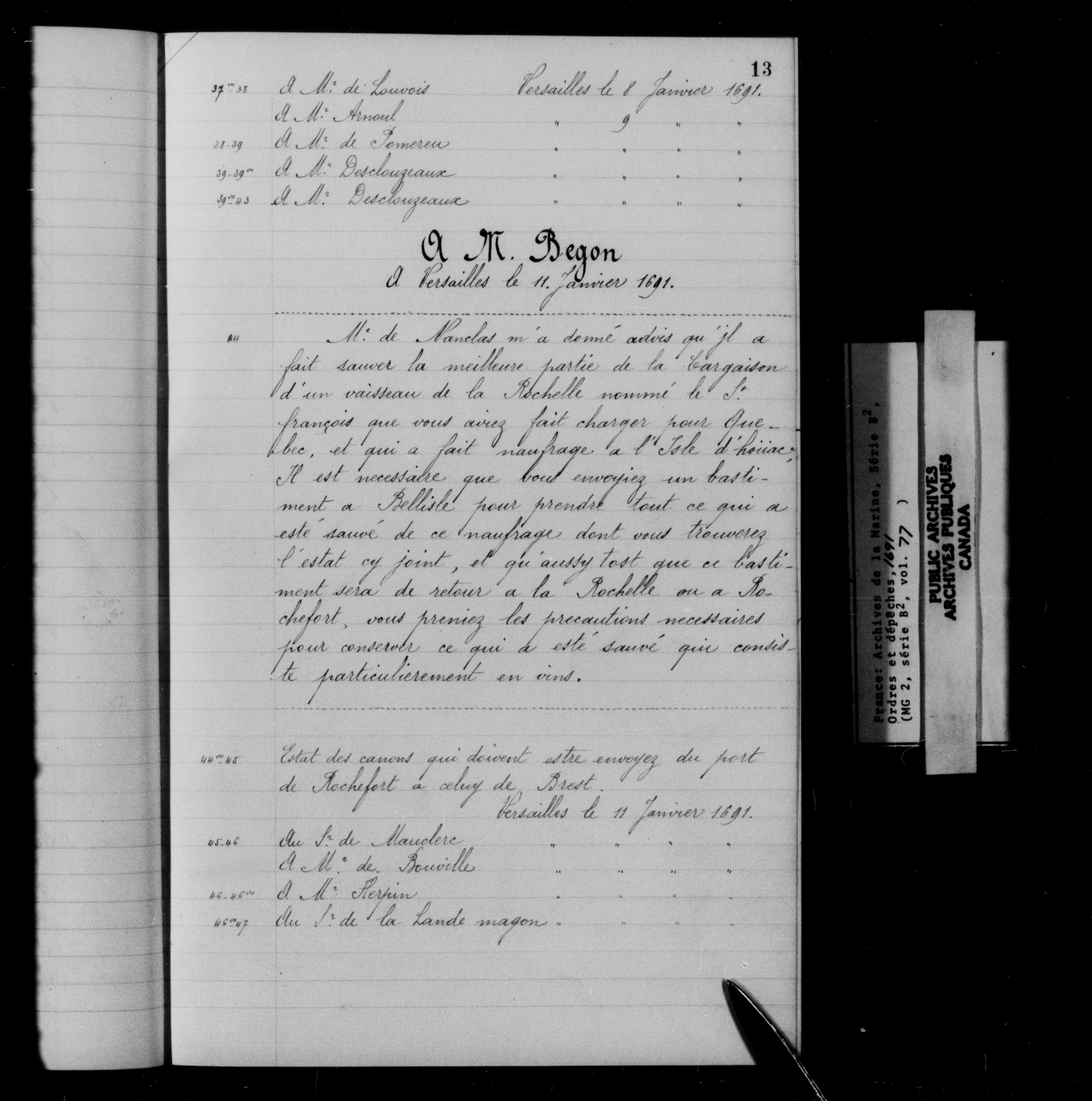 France : Archives de la Marine, Série B2, Ordres et dépêches - 11977