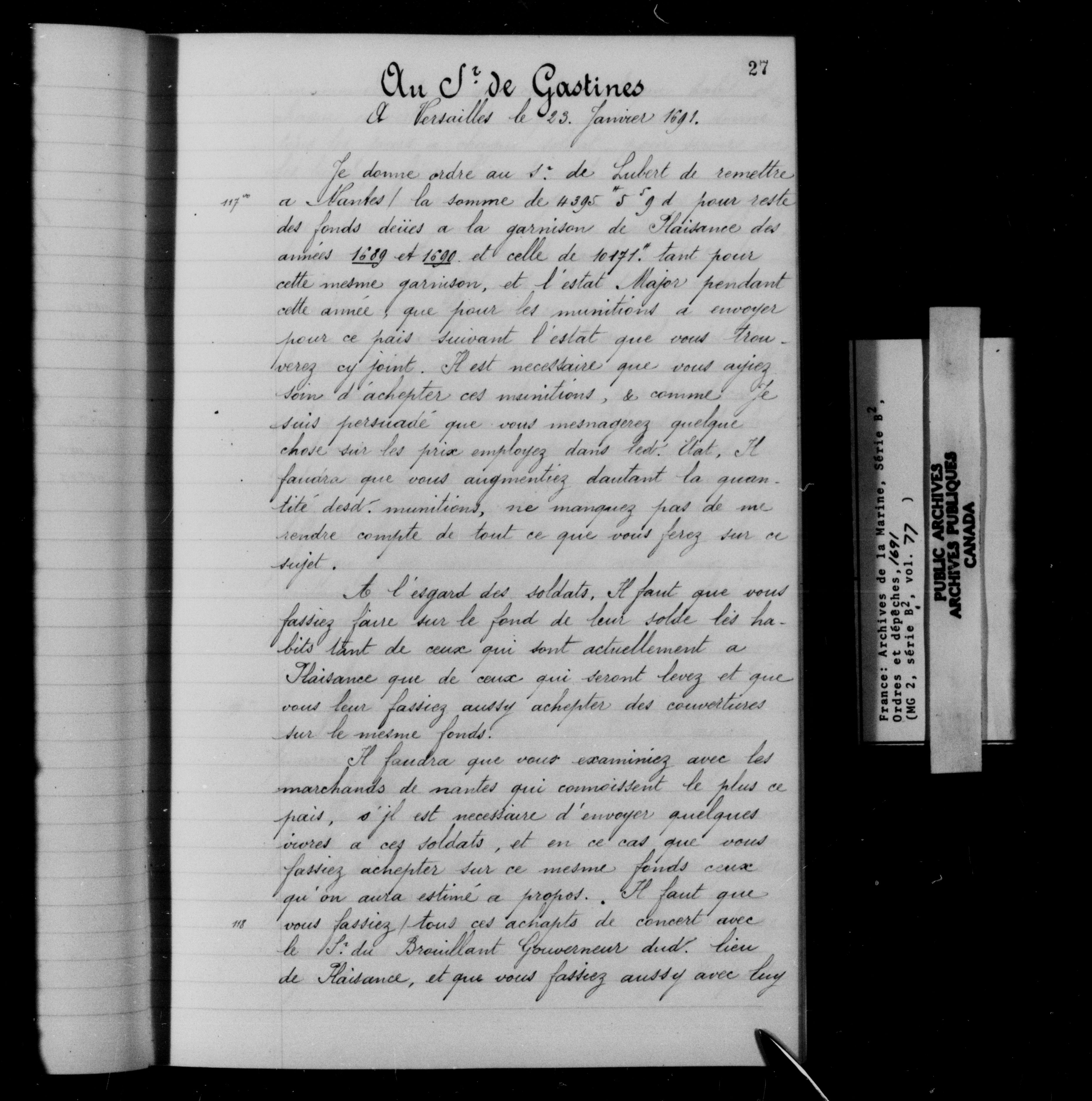 France : Archives de la Marine, Série B2, Ordres et dépêches - 11977