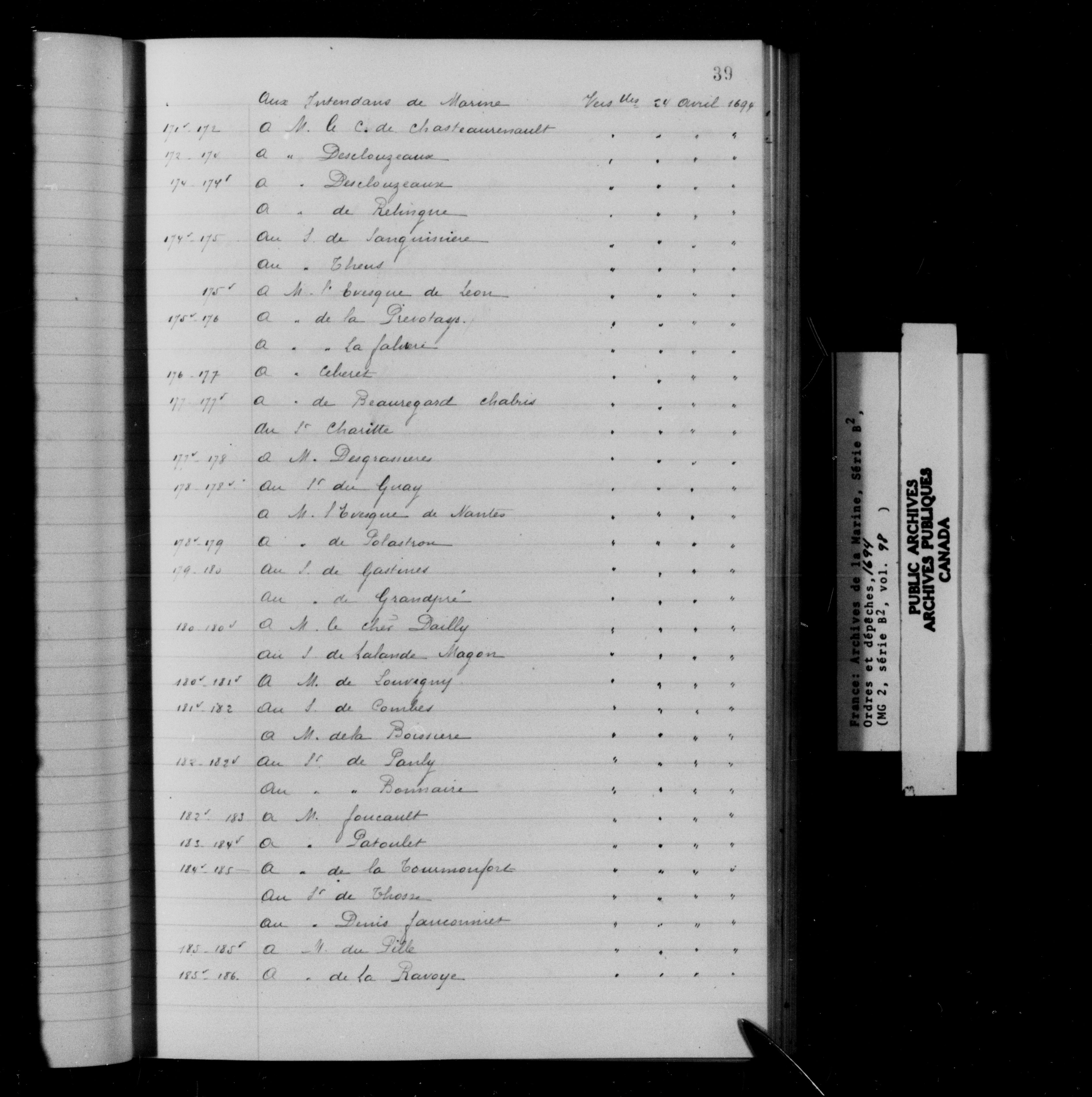 France : Archives de la Marine, Série B2, Ordres et dépêches - 11978